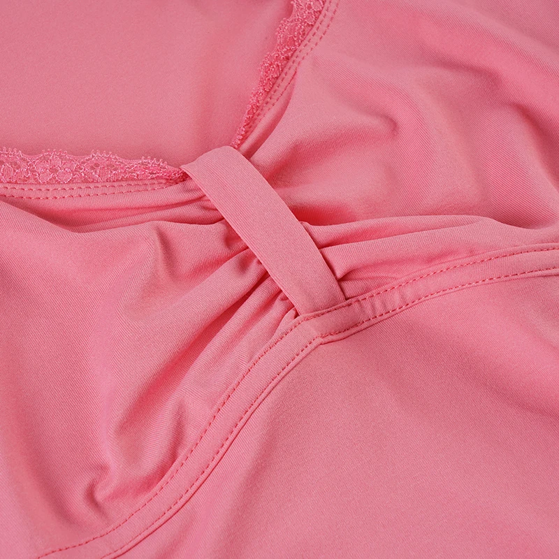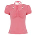 LIZAKOSHT - Beaded Halter-neck Top Pink Brown Color Elegant Fashion Slim-fitting T-shirt French Style Chest Folds Clothes Summer