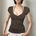 LIZAKOSHT  -  Beaded Halter-neck Top Pink Brown Color Elegant Fashion Slim-fitting T-shirt French Style Chest Folds Clothes Summer