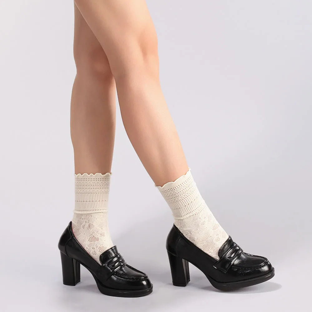 LIZAKOSHT  -  Big Size 42 Summer Classic Black Slip On Pumps Women Shoes Retro 8cm Height Square Heels Office Lady Loafers Dress Shoes