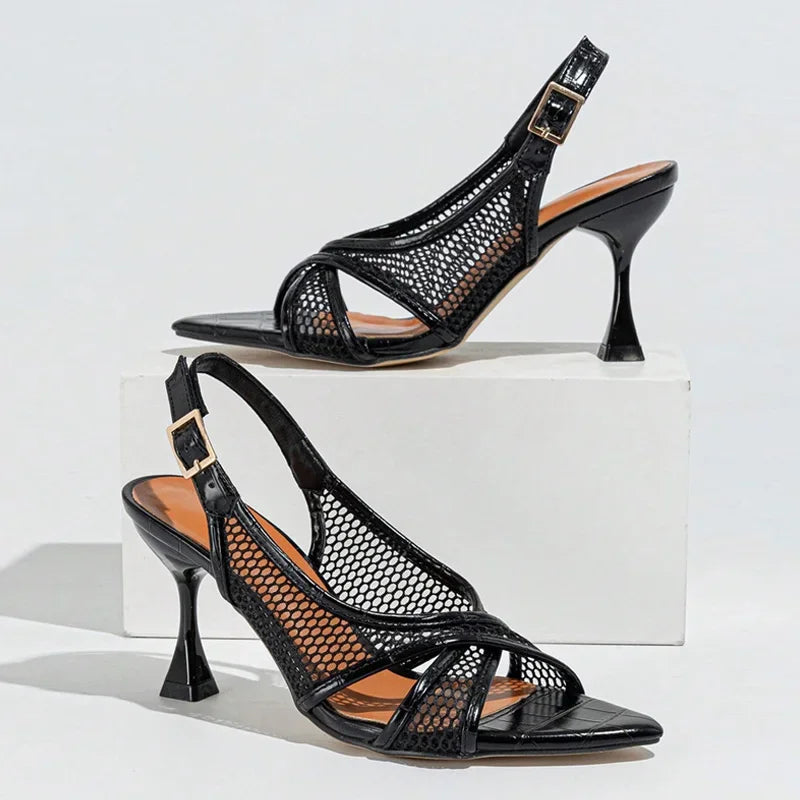 LIZAKOSHT  -  Black Mesh Open Toe Women High Heels Summer Brand Designer Sexy Hollow Buckle Party Dress Thin High Heel Women Open Toe Sandals