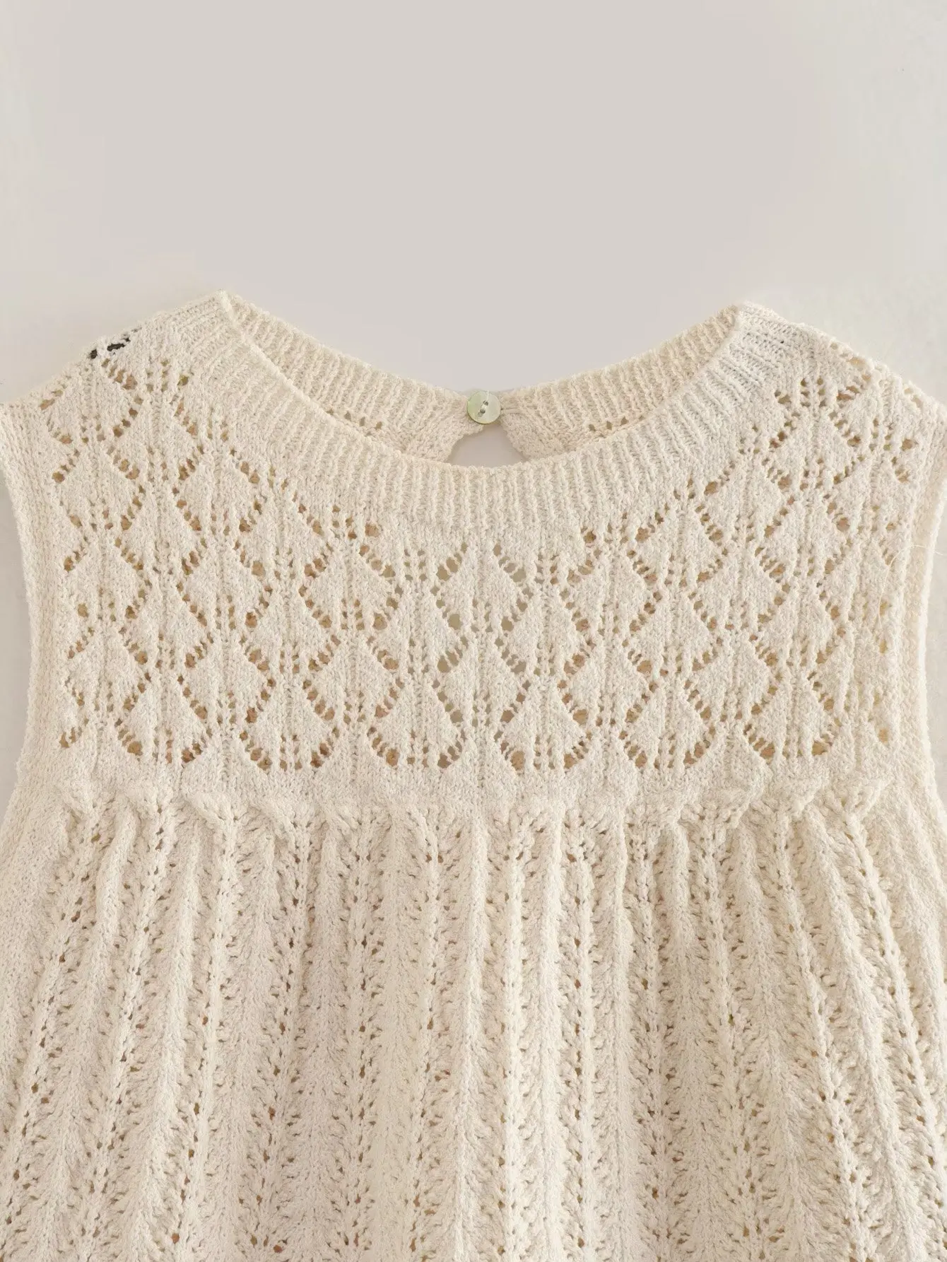 LIZAKOSHT - Boho Beach Crochet Knit Lace Dress Sets for Women Vintage Casual Sleeveless O-neck Tops Ruffles Mini Skirts Suit Dresses