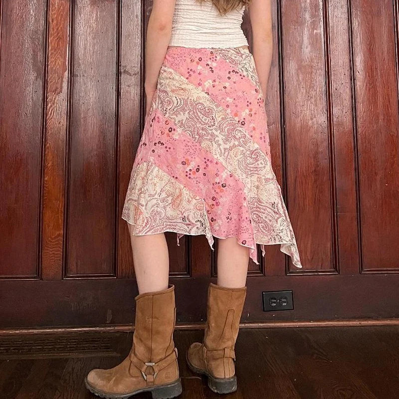 LIZAKOSHT - Boho Chic Color Block Asymmetric Long Skirt Women Fashion Vacation Style Mid Length Flowy Skirt Aesthetic Outfits