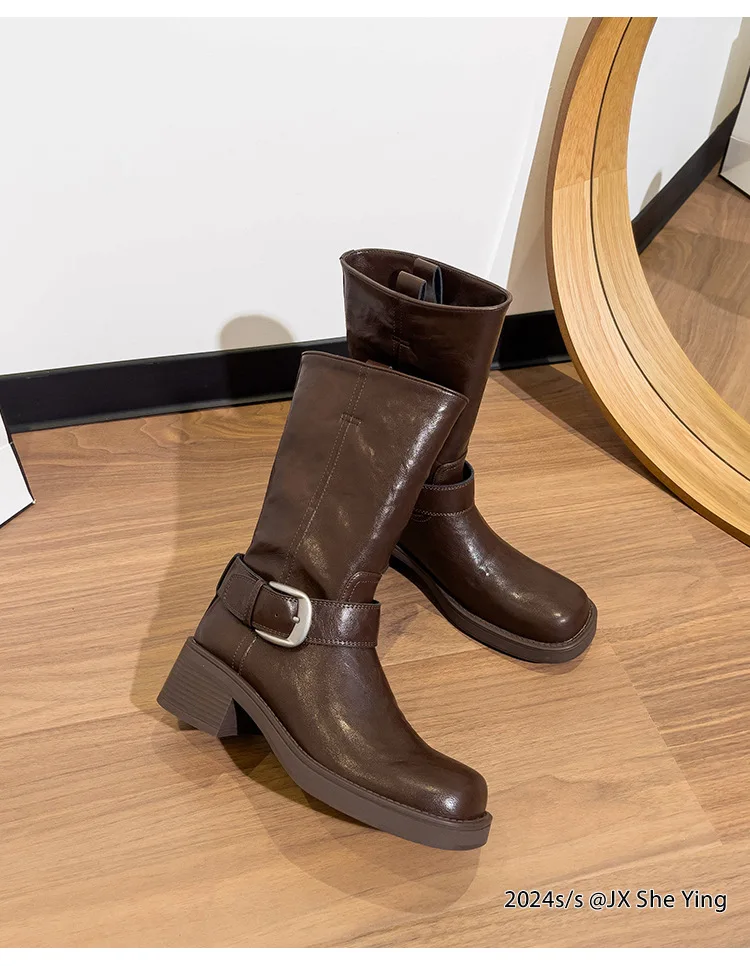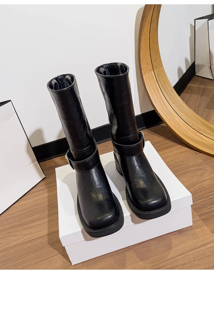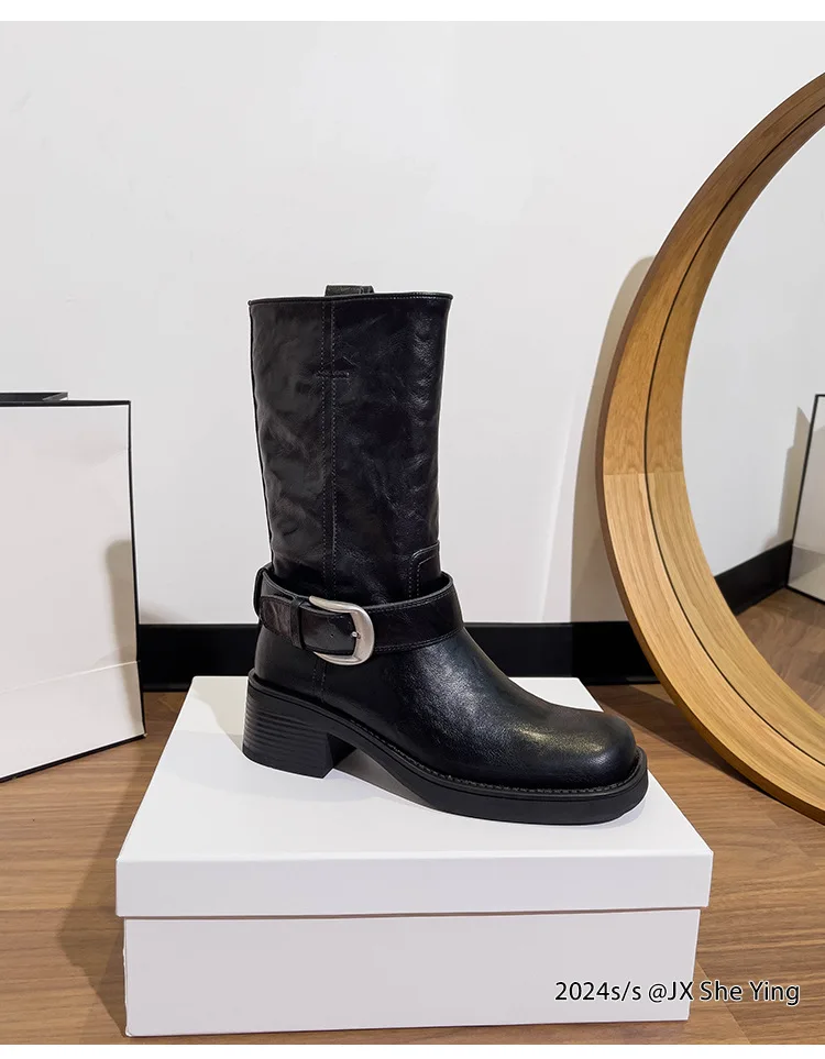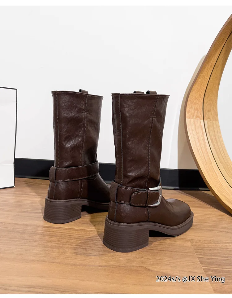 LIZAKOSHT - Boots Flat Platform Women's Rubber Shoes Rain Clogs Med Hoof Heels PU Boots Flat Platform Women's Rubber Shoes Rain Clogs Med PU