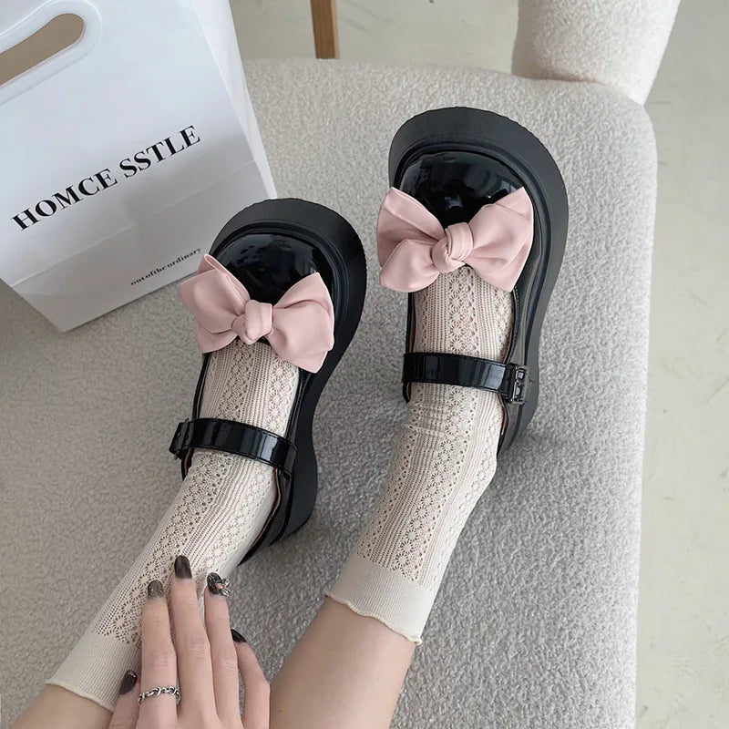 LIZAKOSHT Bow Tie Black Thick Sole Small Leather Shoes for Women New Summer French Retro Shallow Cut Single Shoes