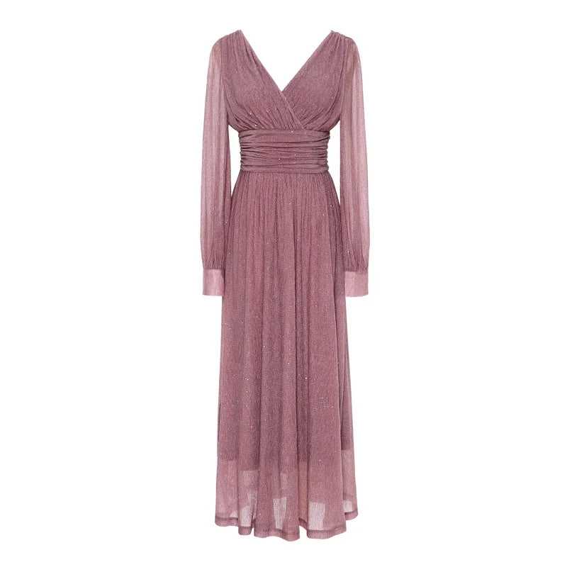Lizakosht Brand New Women Elegant Dress High Quality V-neck Long Sleeve Glitter Dress Sexy Dresses Party Night Club Dress Vestidos