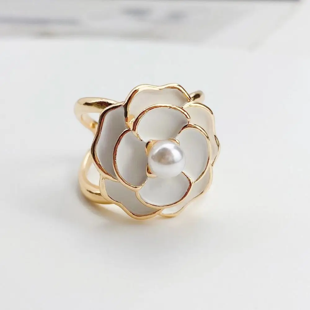 LIZAKOSHT - Buckles Clothing Accessory Pearl Alloy Camellia Hollow Out Fashion Jewelry Women Shawl Clips Vintage Scarf Buckle Silk Brooch