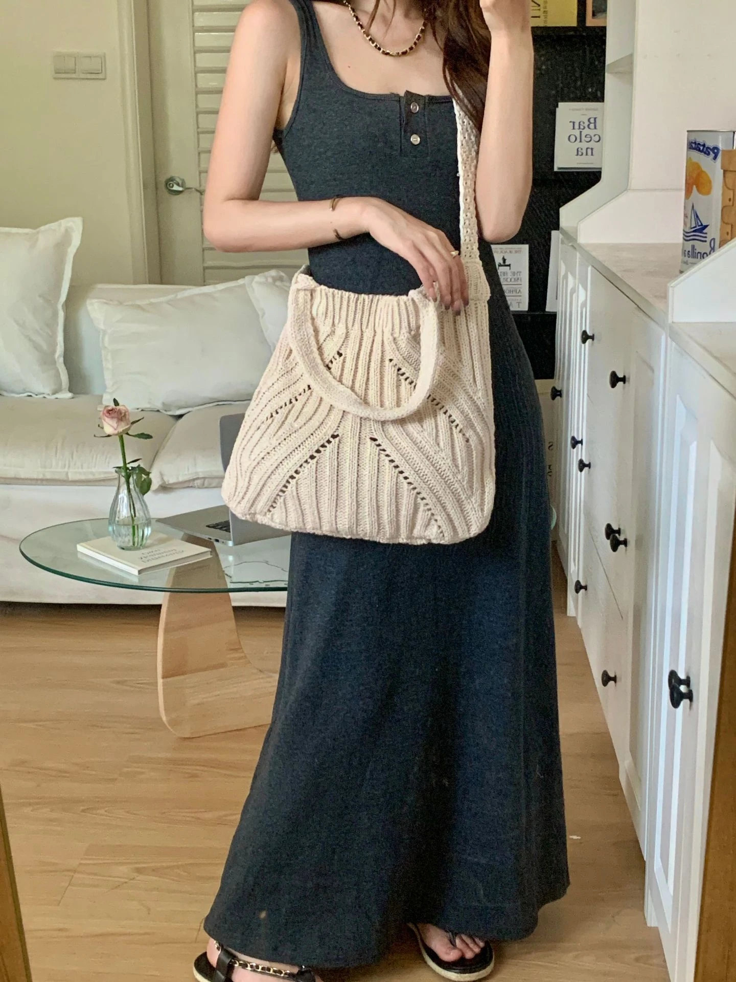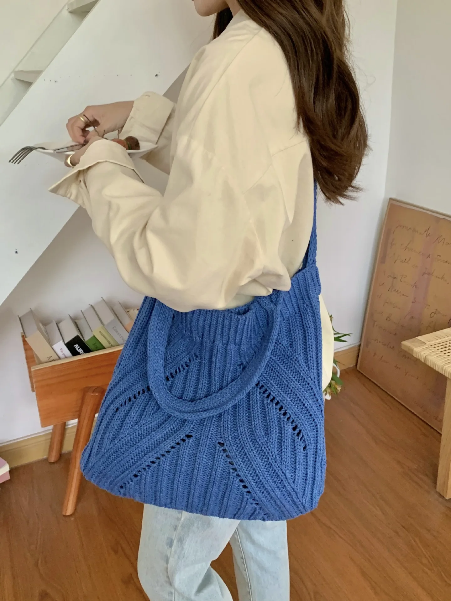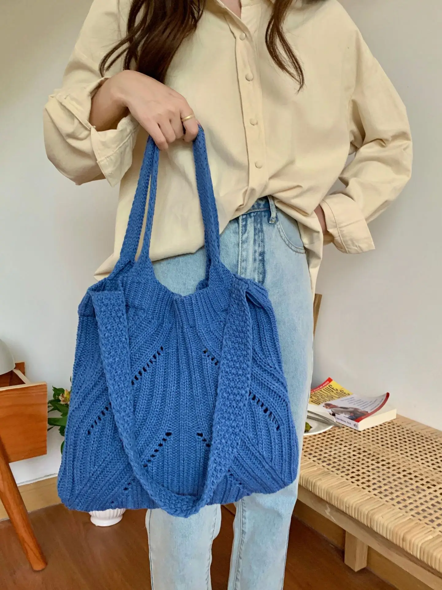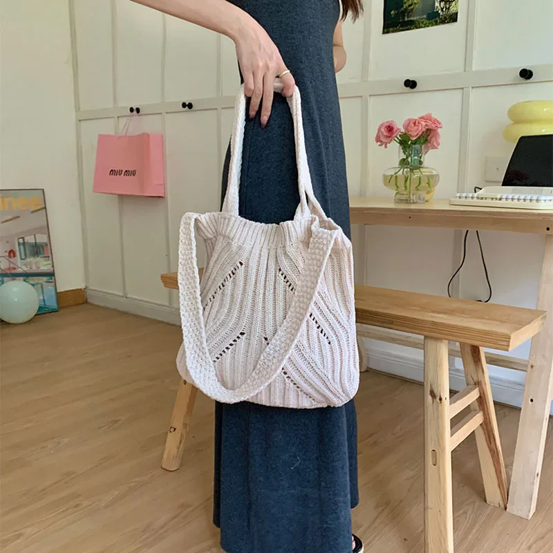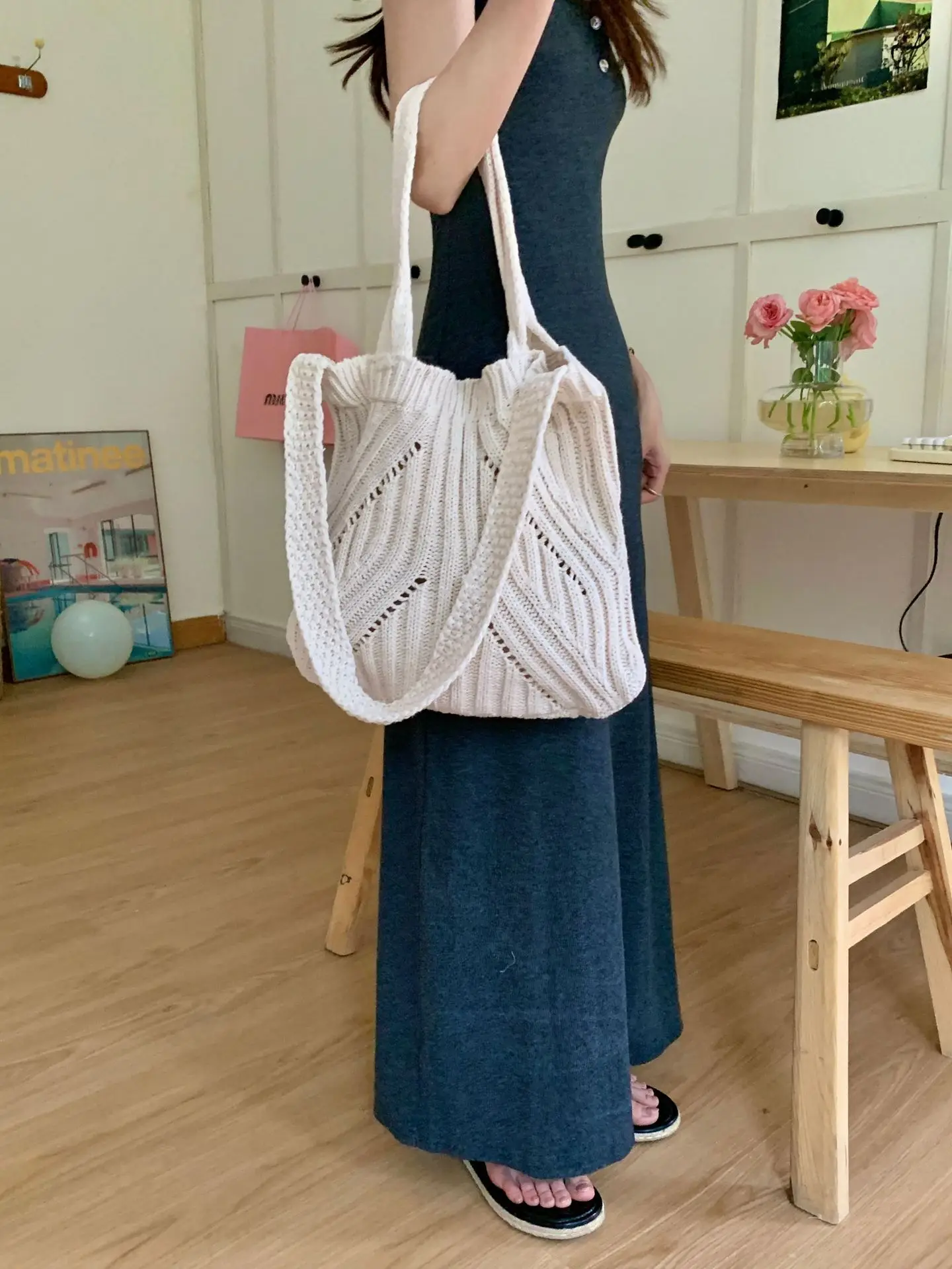 LIZAKOSHT  - Casual All Match Women Shopping Shoulder Tote Bags New Grunge Vintage Underarm Bag Y2k Knitted Crossbody Handbags High-capacity