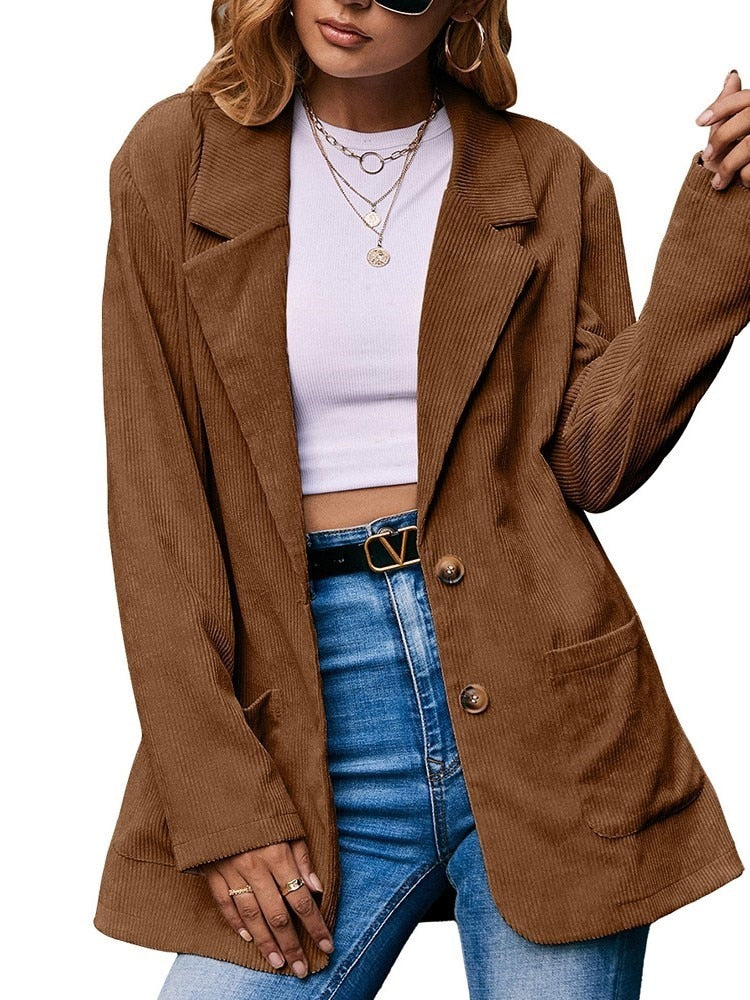 Lizakosht Casual Corduroy single-breasted Small Suit Commuter Trench Coat Female Fashion Casual Blazer Coat