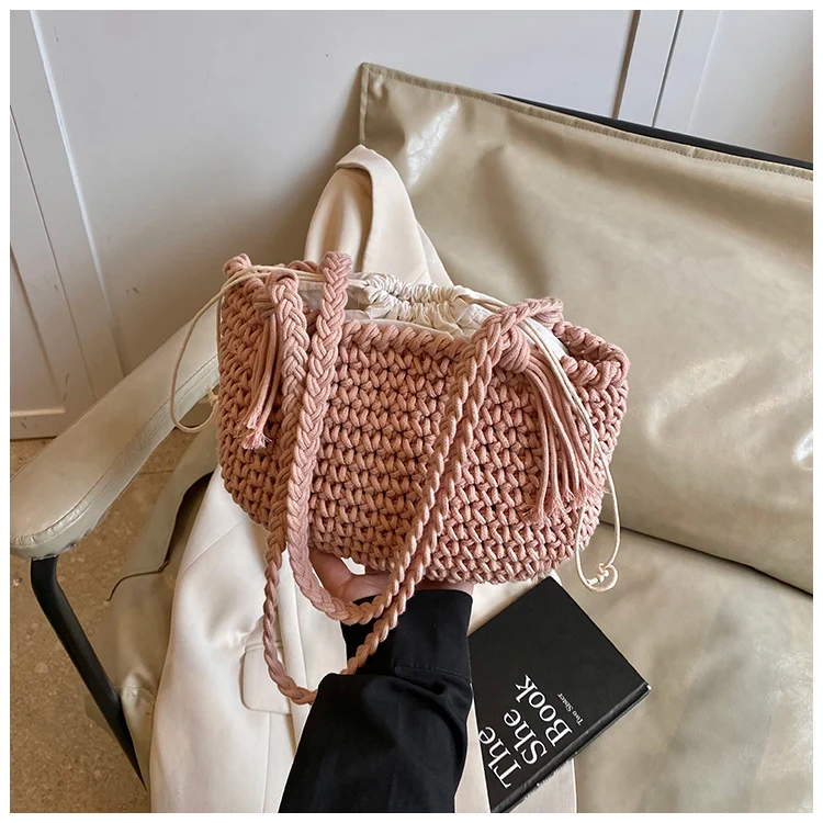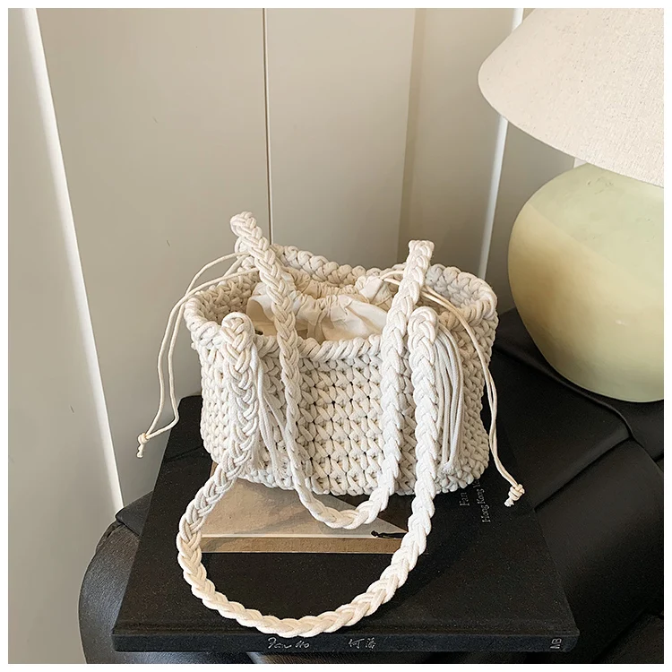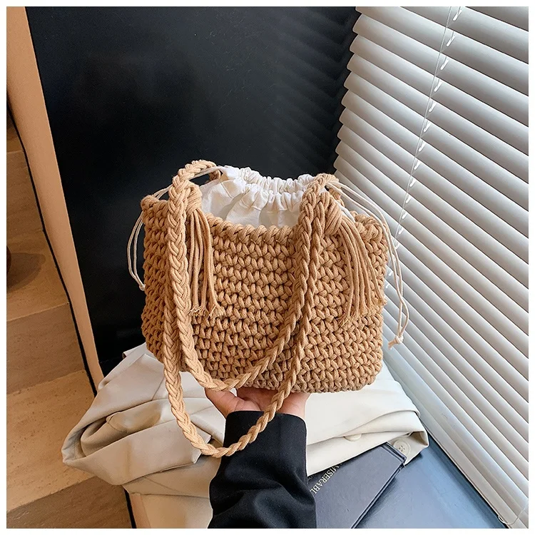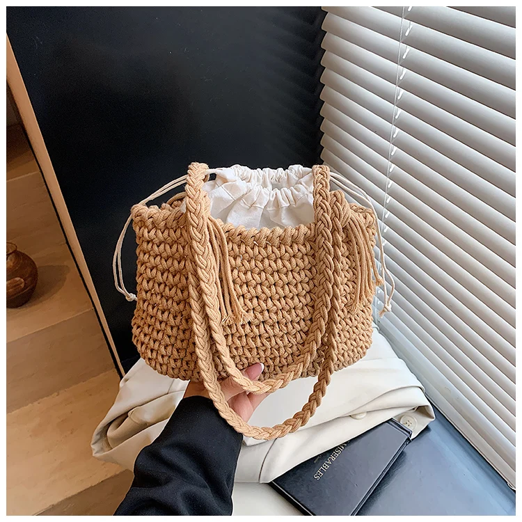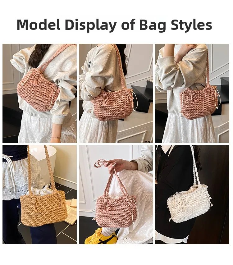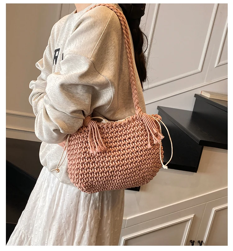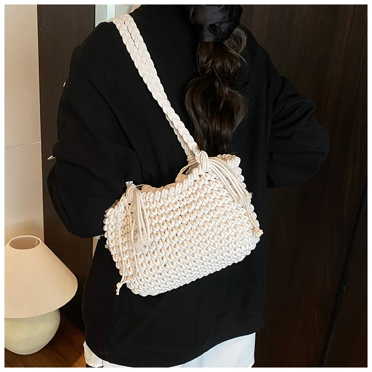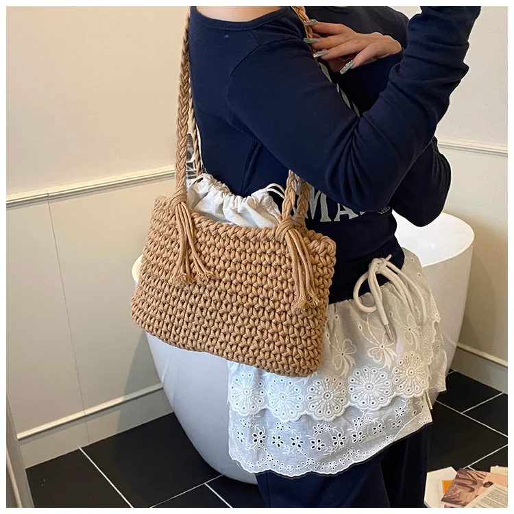 LIZAKOSHT  -  Casual Knitted Large Capaci oulder Bag for Women Summer Versatile St Weaving Beach Coast Bag Modern Neutral Sle Poly
