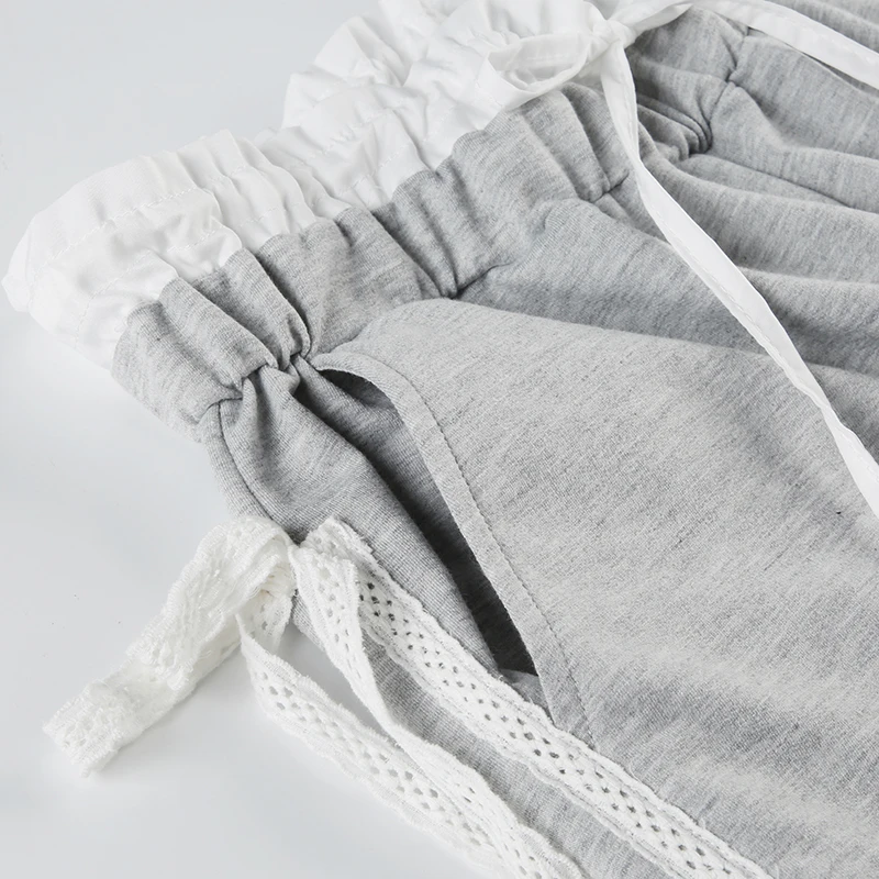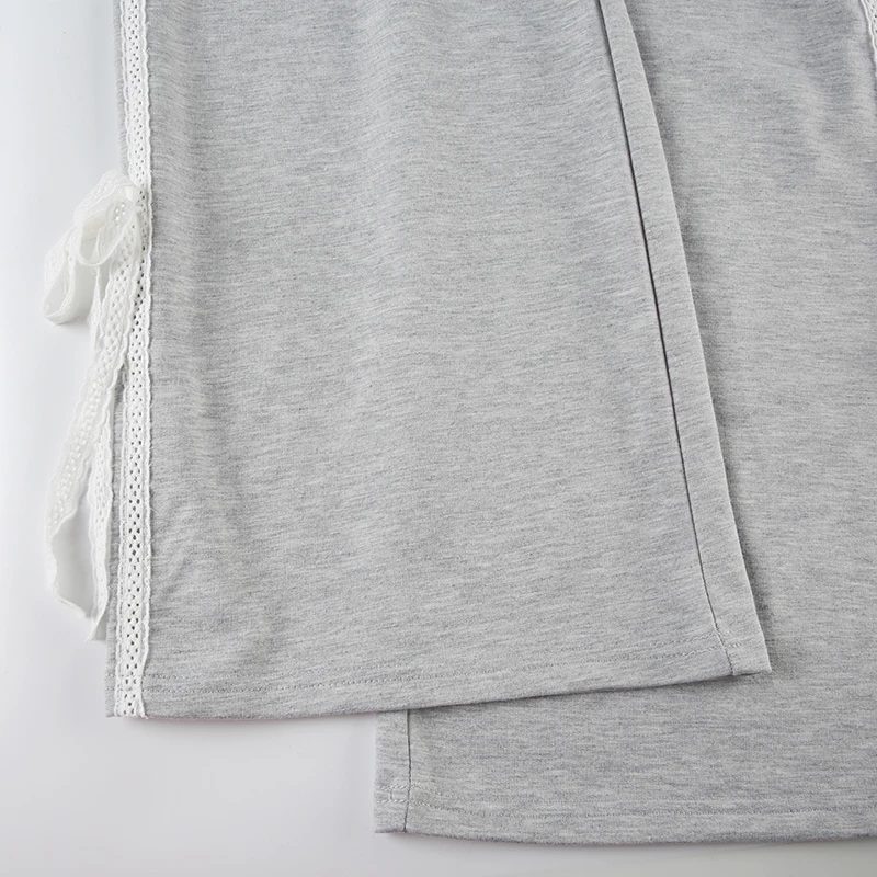 LIZAKOSHT - Casual Lace Patchwork Sweatpants Harajuku Wide Leg Gray Pants Y2k Streetwear Solid Trousers Korean Loose Ckothing 2024