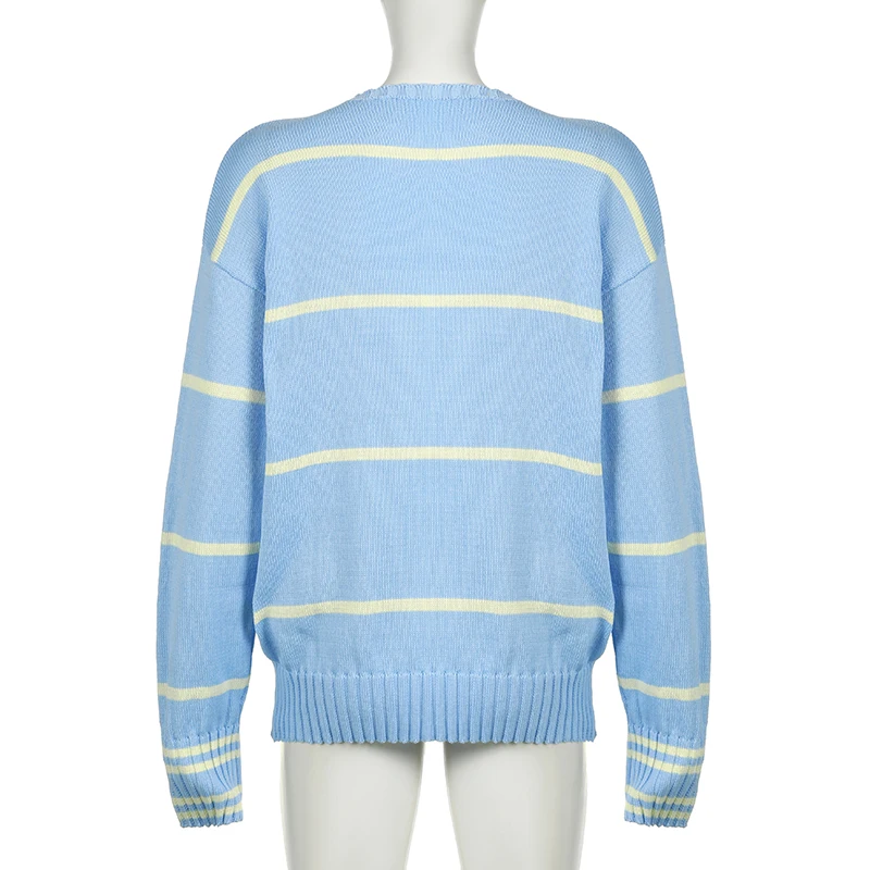 LIZAKOSHT  -  Casual Loose Contrast Striped Sweater Bvasic O-Neck Long Sleeve Knitted Pullovers Women Autumn Winter Streetwear