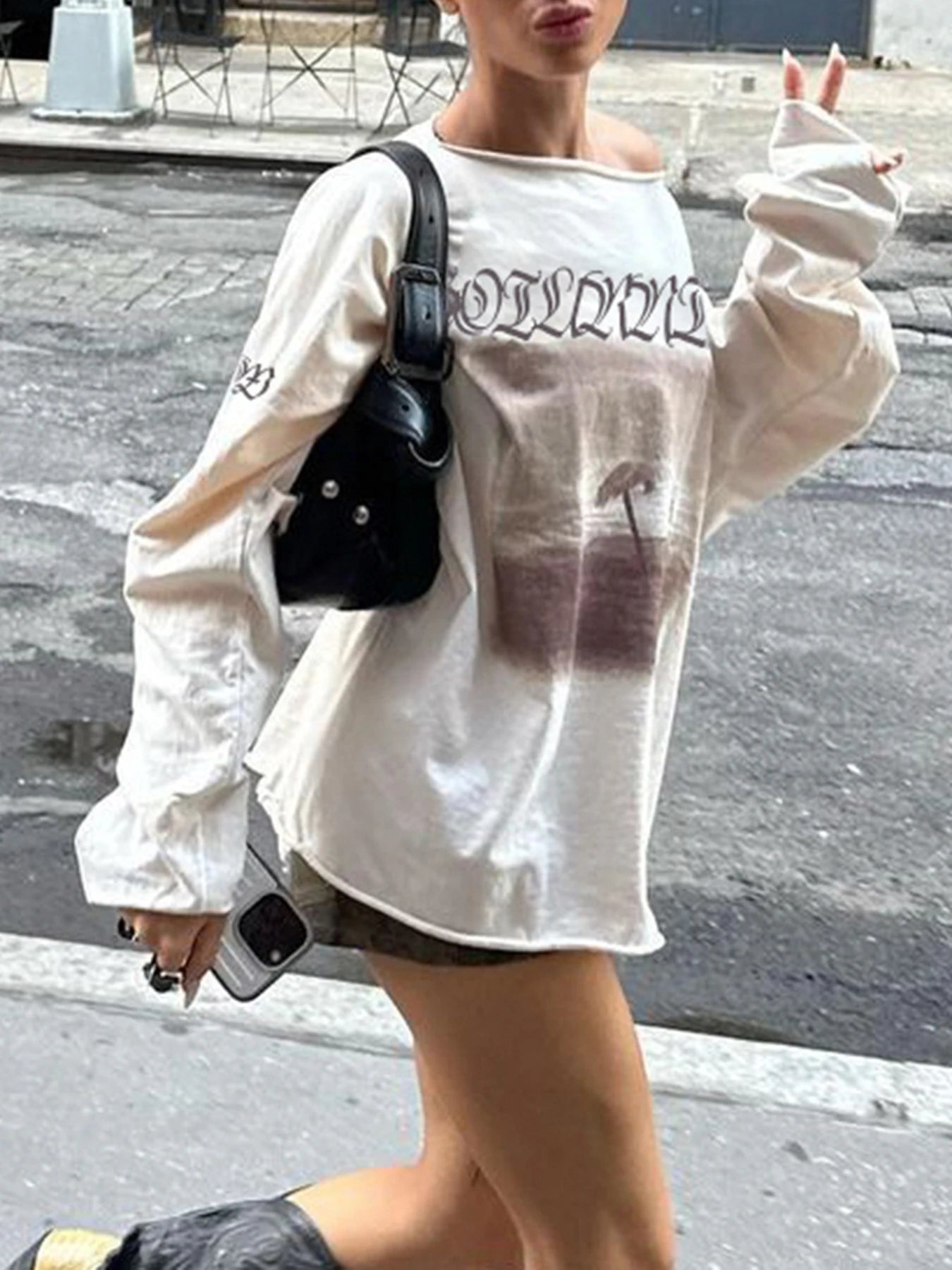 LIZAKOSHT - Casual Loose Printed T Shirt Sporty Basic O-Neck Long Sleeve Tees Women Autumn Spring Fashion Streetwear Ladies