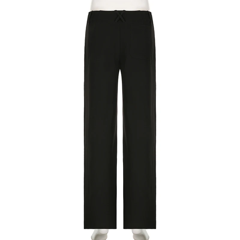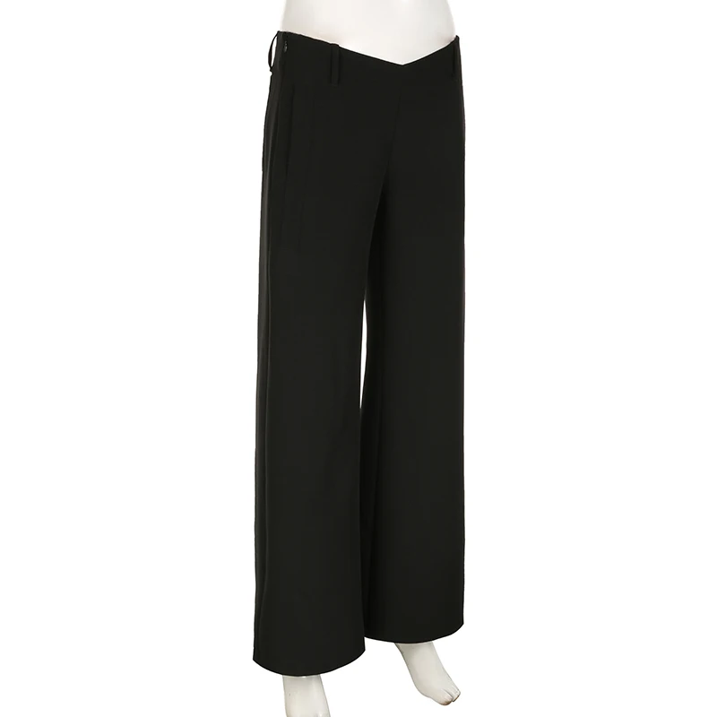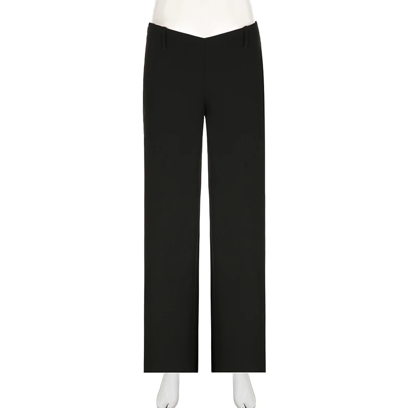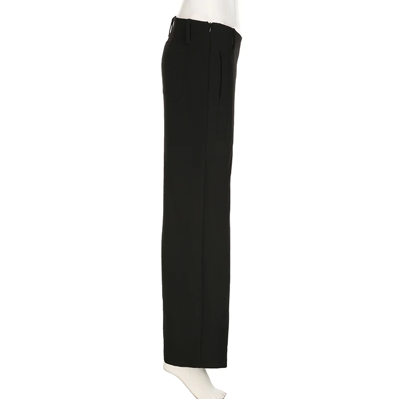 LIZAKOSHT - Casual Loose Solid Suitpants Office Lady Basic Mid-Waisted Straight Wide Leg Pants Women Summer Fashion Streetwear