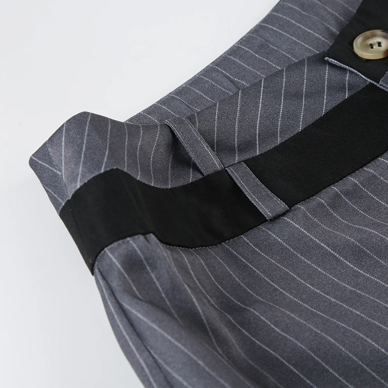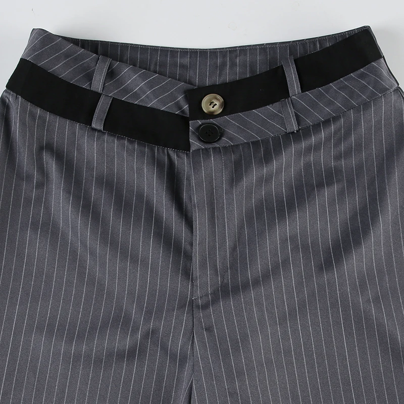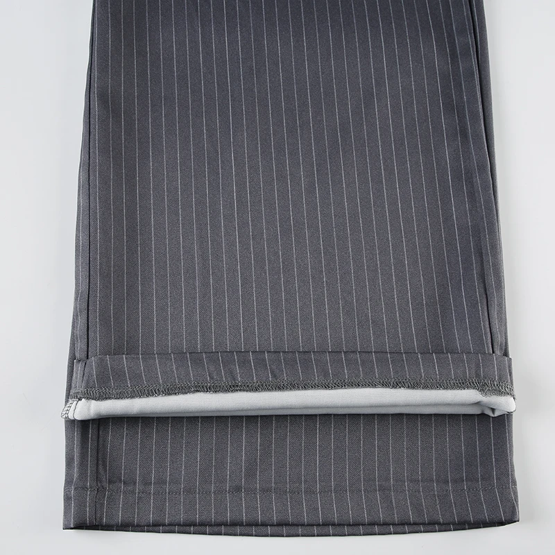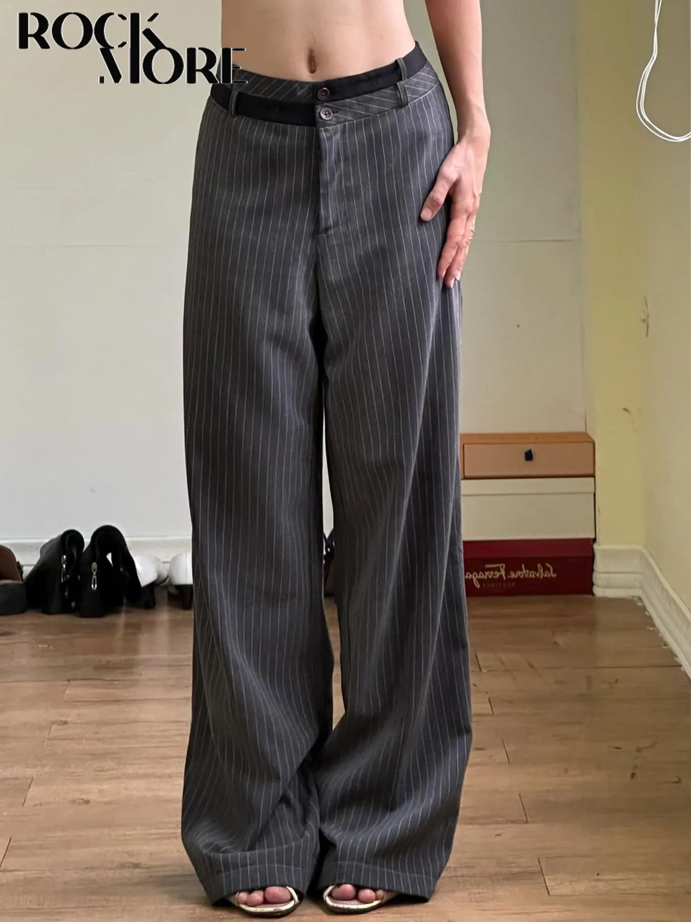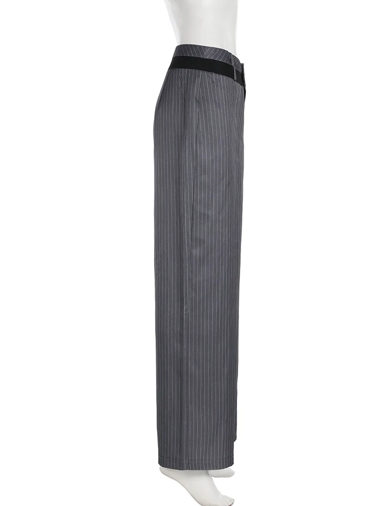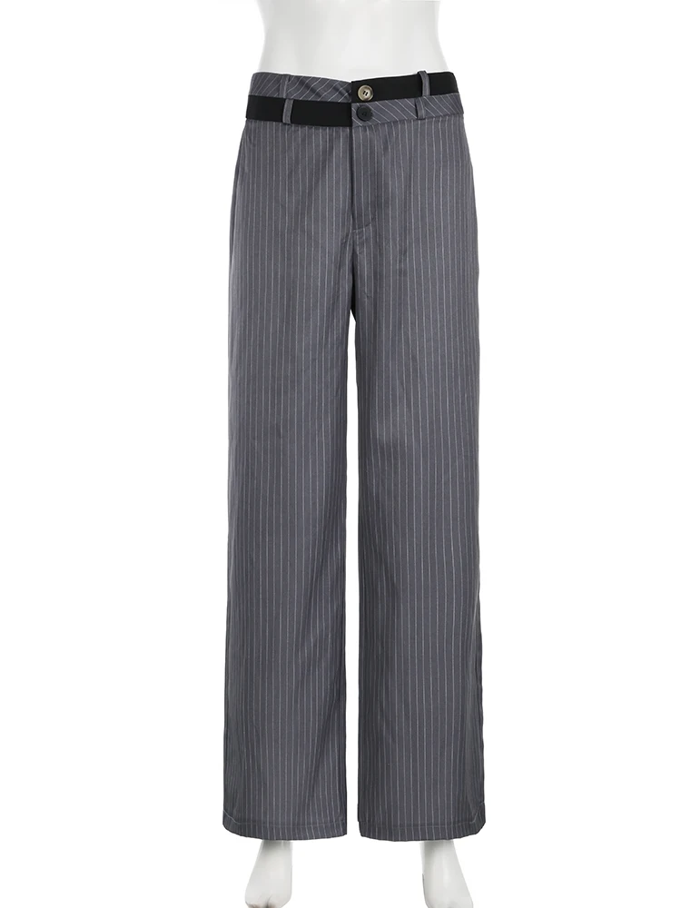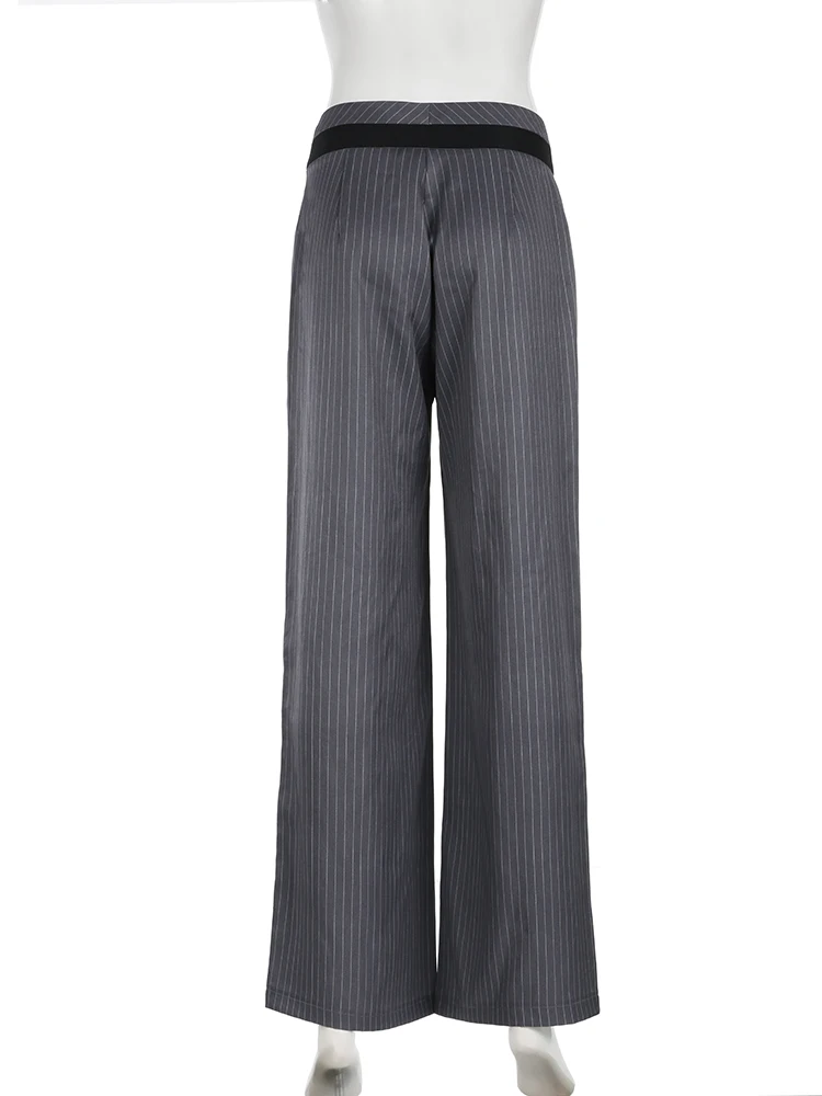 LIZAKOSHT - Casual Patchwork Slimming Woven Pants Elegant Striped Pants Low Waist Wide Leg Suit Pants Korean Fashion Baggy Trousers