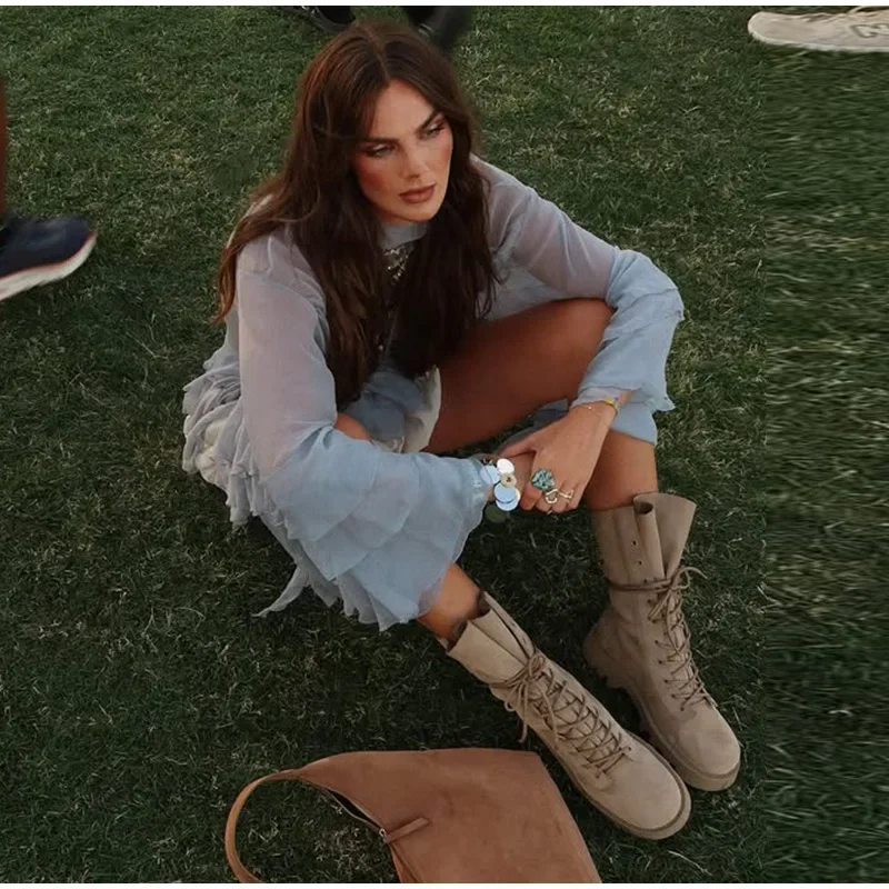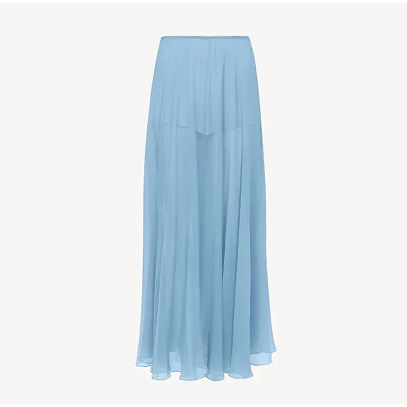 LIZAKOSHT  -  Casual Ruffle Turtleneck Shirt Skirt Women Set Solid Full Sleeve Hallow Out Top See Through Pleated Long Skirts 2025 Lady Suit