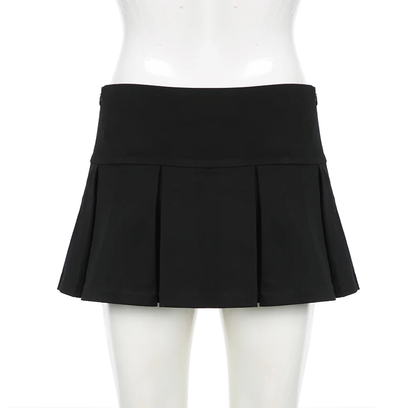 LIZAKOSHT - Casual Solid A-Line Pleated Skirt Basic Slim Low-Waisted Super Mini Skirts Women Summer Fashion Streetwear Ladies