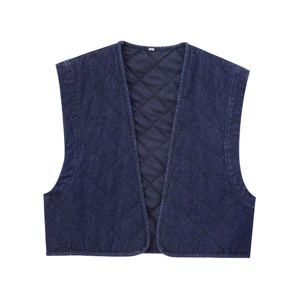 LIZAKOSHT - Casual Solid Denim Cotton Vest for Women Autumn Winter V-Neck Sleeveless Short Tops Female Waistcoat Streetwear