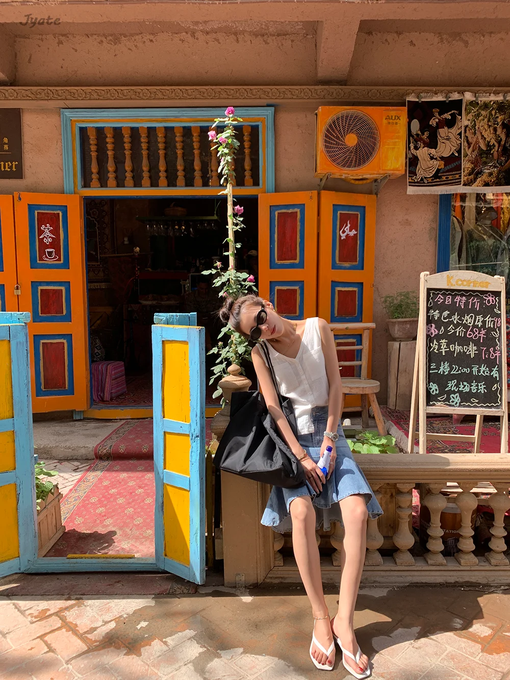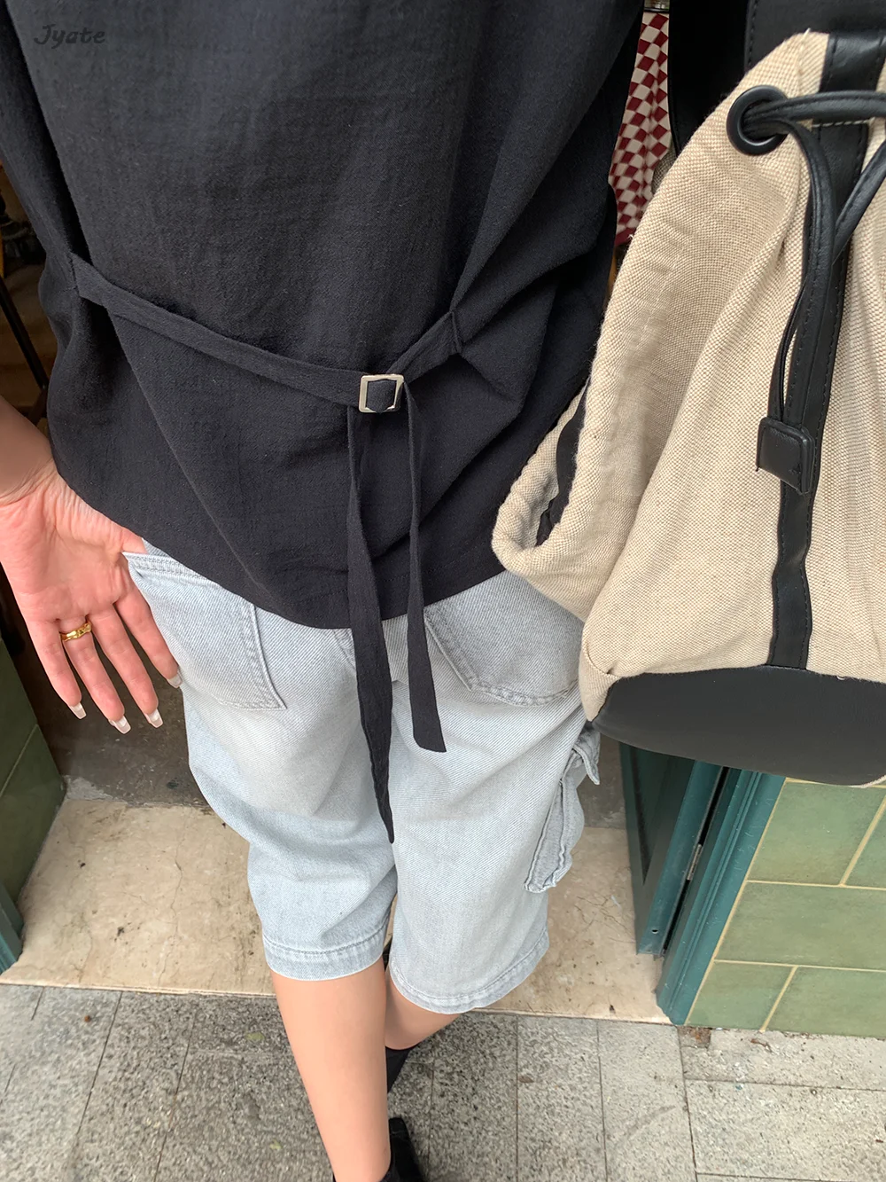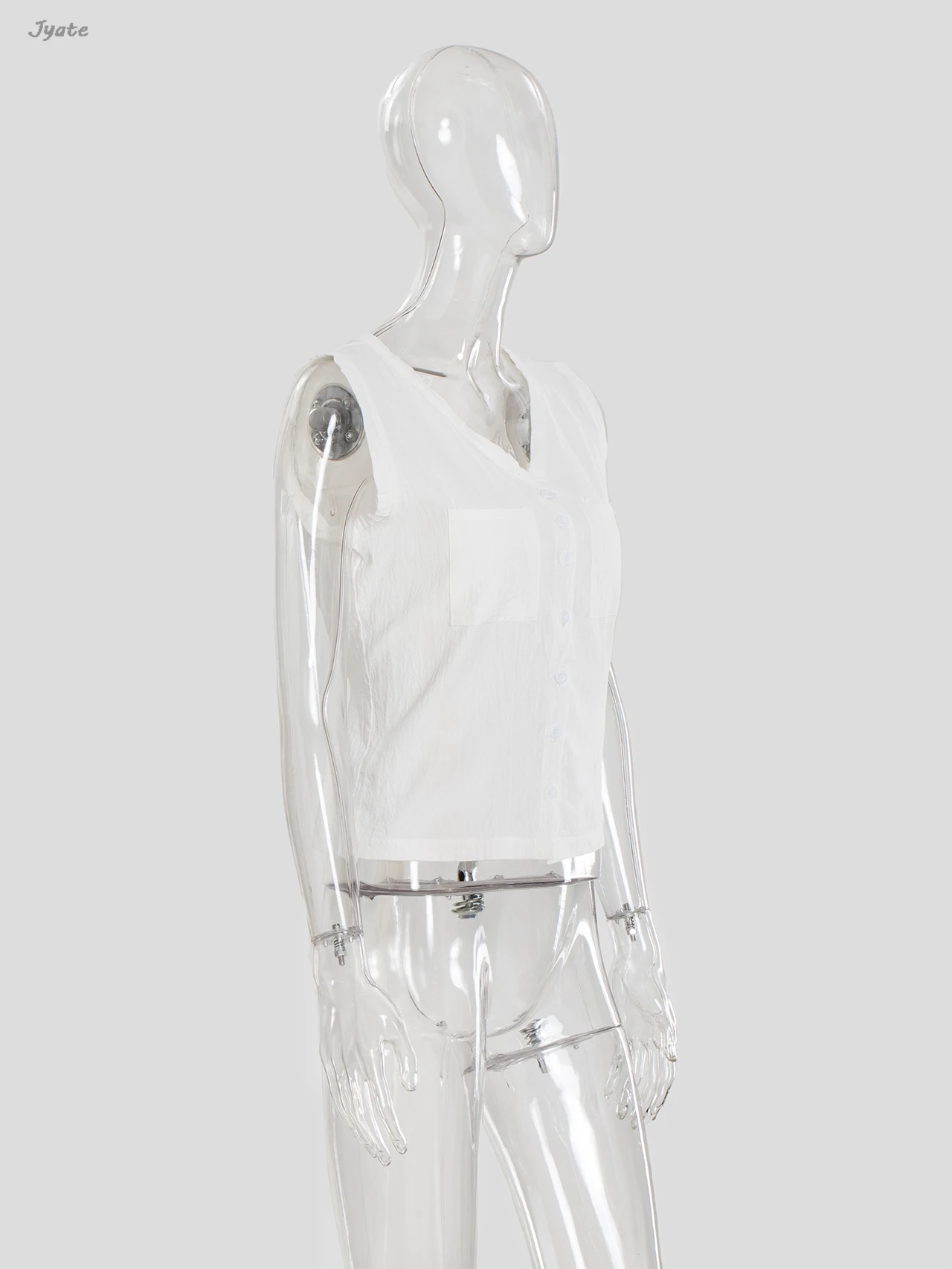 LIZAKOSHT - Casual Women Thin Cotton Summer Vest New V-neck Pocket Single Breasted Office Lady Tank Beige Black Fashion Sleeveless Top