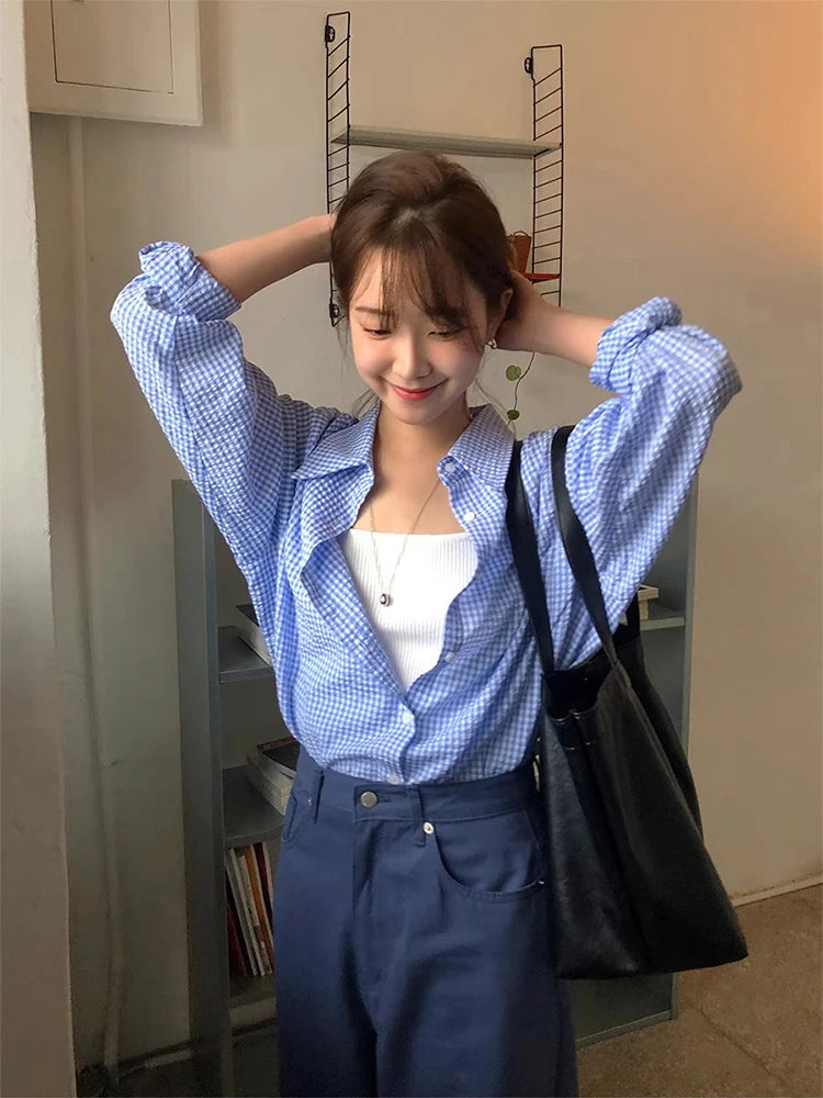 LIZAKOSHT  -  Chic Autumn New Gentle Bubble Texture Design Loose Long Sve Women's irt Top Cotton Polyester Blend Breathable Comfortable
