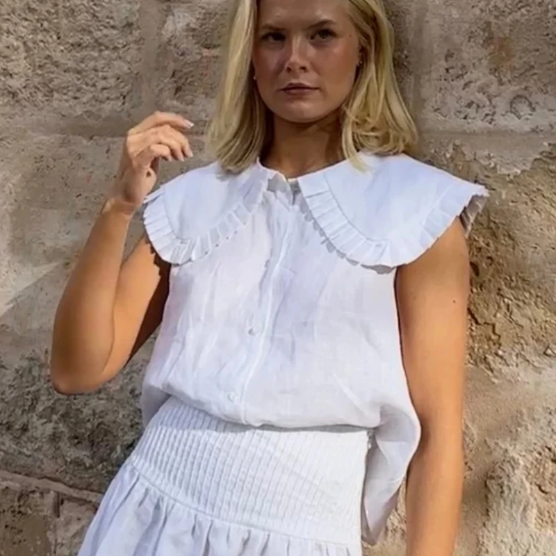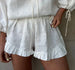 LIZAKOSHT  -  Chic Lien Ruffle Collar Shirt Shorts Set Women Elegant White Sleeveless Shirts High Waist Pleated Skirt 3Piece Sets Lady Holiday