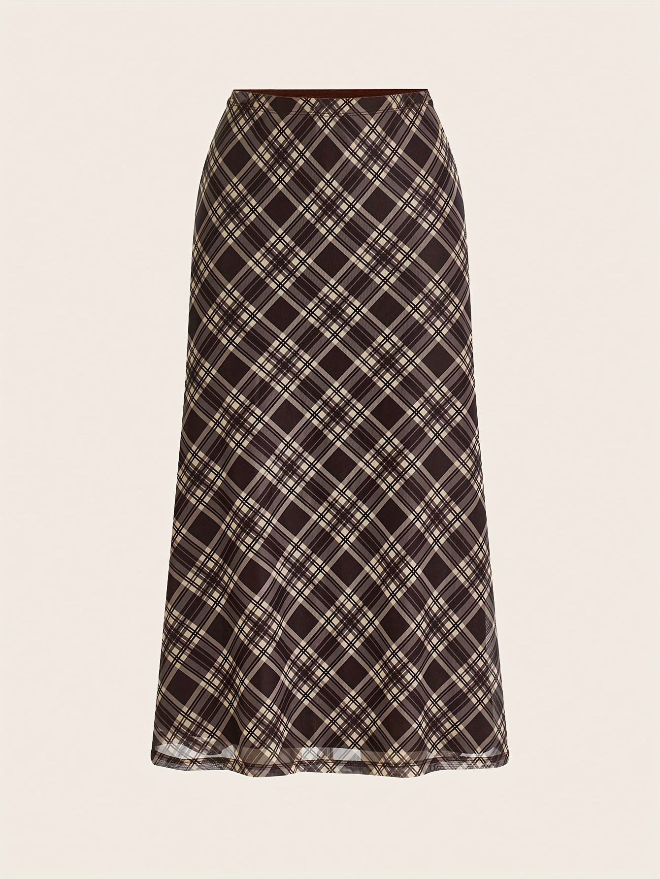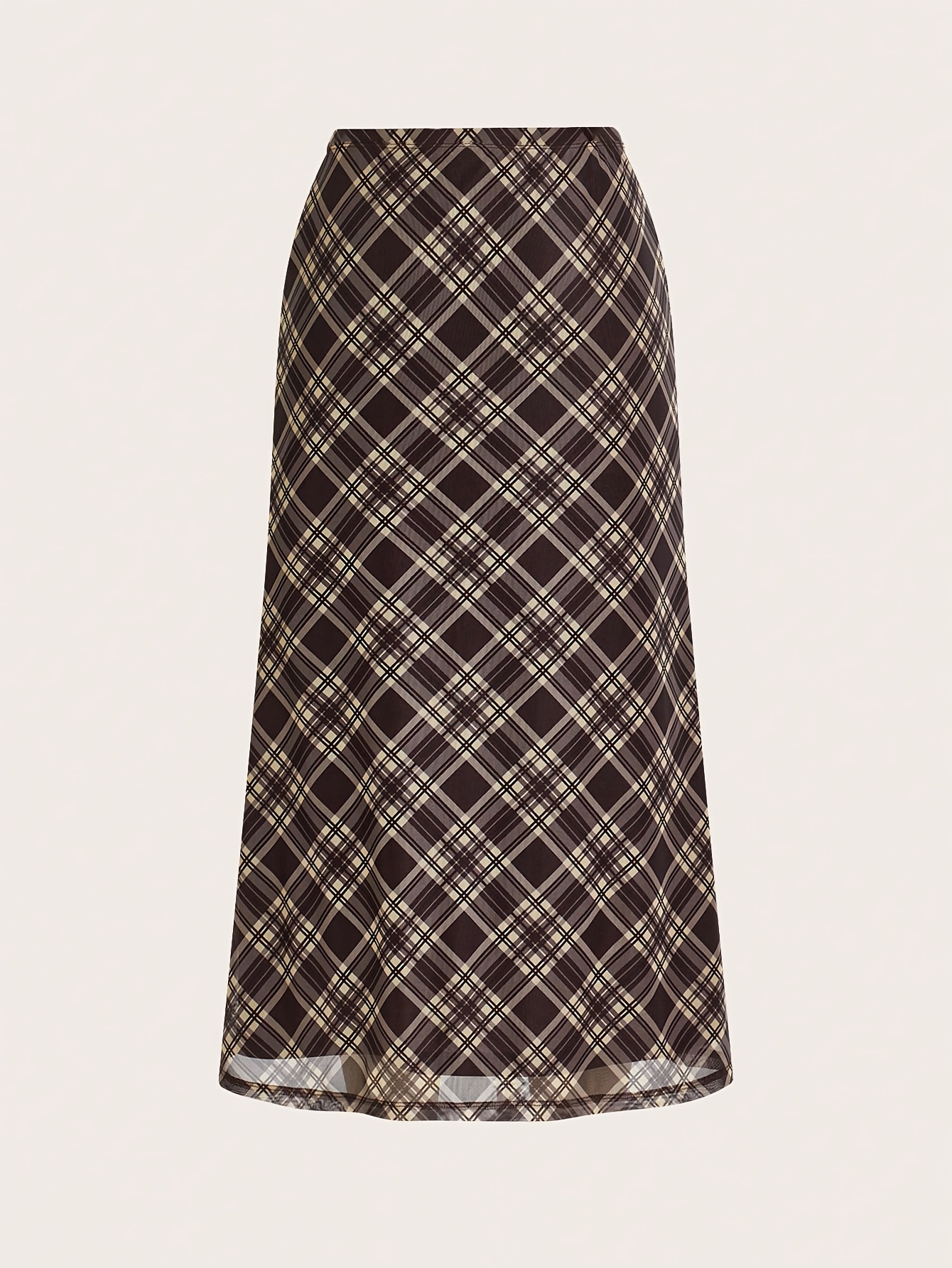 LIZAKOSHT - [Chic Plaid Mesh Skirt] High Waist Plaid Mesh Skirt - Non-Stretch Polyester, Machine Washable - Chic Women's