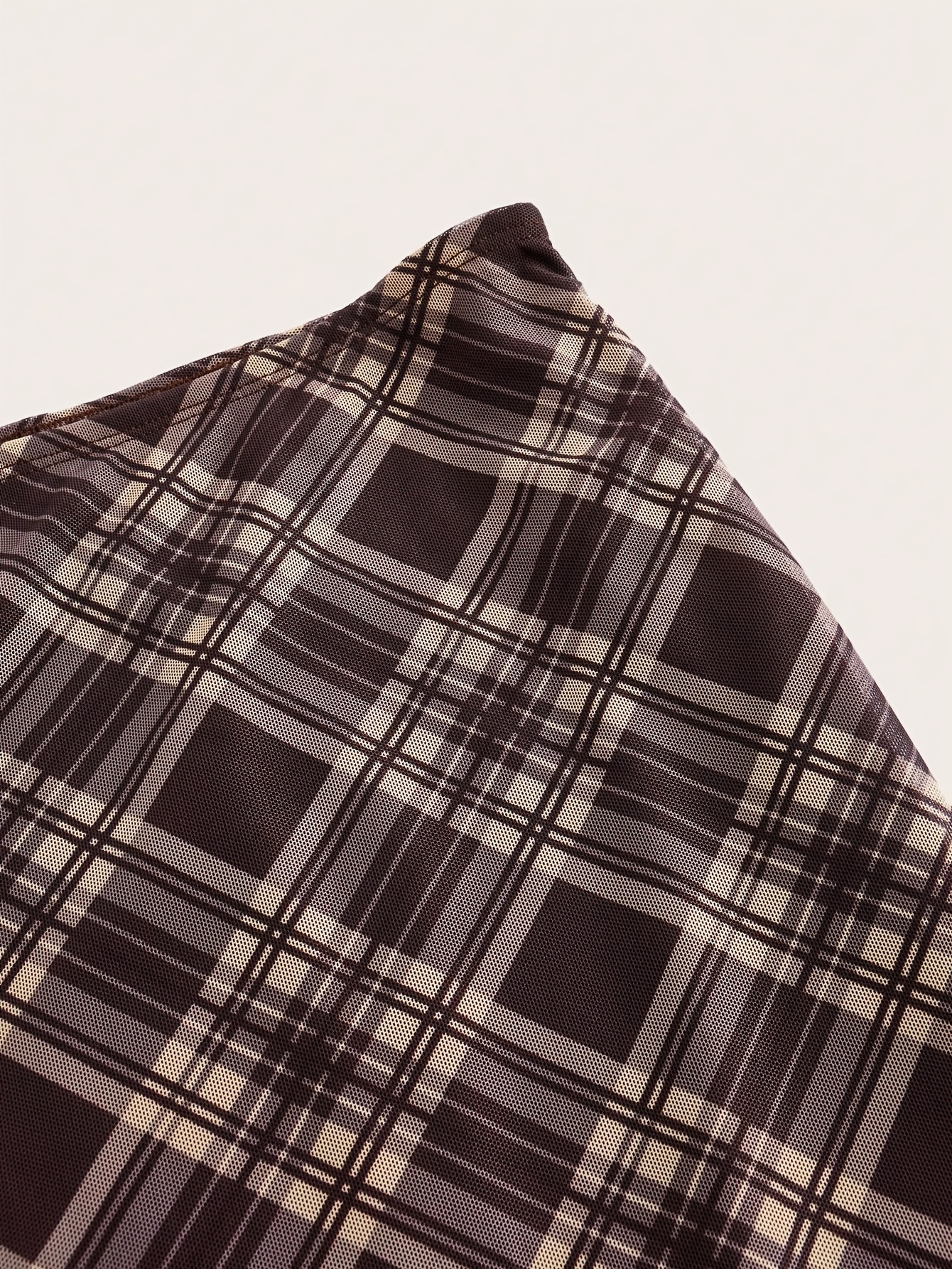 LIZAKOSHT  -  [Chic Plaid Mesh Skirt] High Waist Plaid Mesh Skirt - Non-Stretch Polyester, Machine Washable - Chic Women's