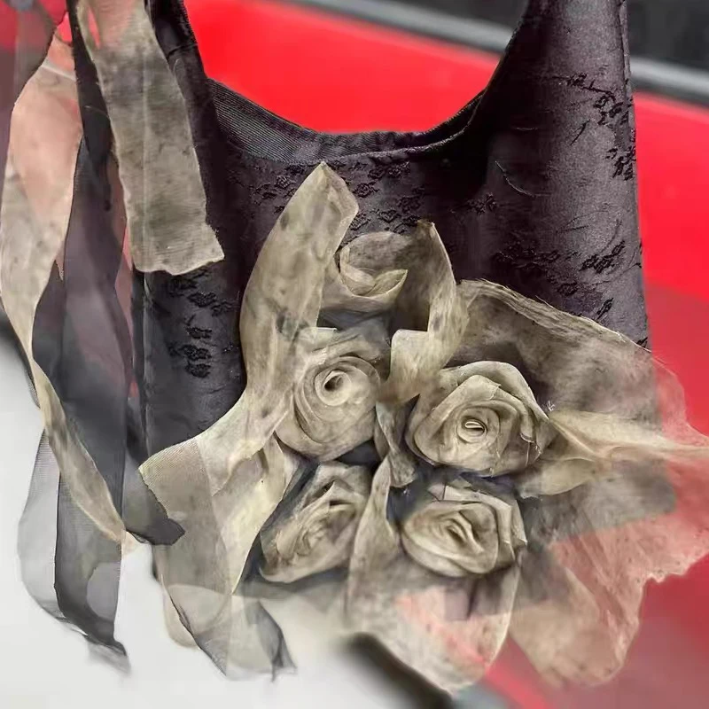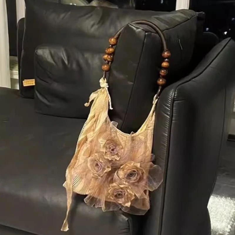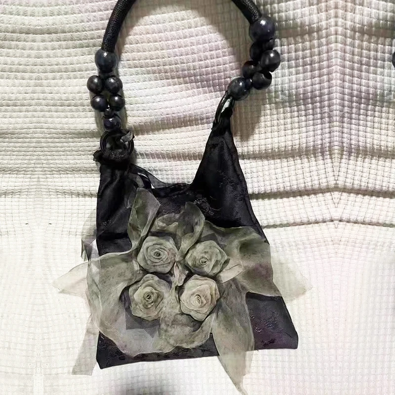 LIZAKOSHT - Chinese Style Appliques Flowers Bag For Women Luxury Designer Handbags Purses 2024 New In Satin Beaded Strap Slim Cloth Shoulder