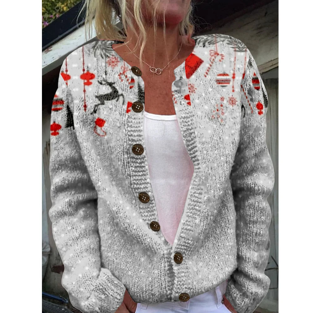 LIZAKOSHT - Christmas Women Cardigan Knitted Sweater Long Sleeve Jumper Cardigans Casual Streetwear Fashion Silver Color Coat
