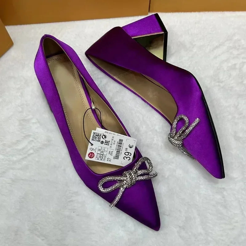 LIZAKOSHT - Chunky High Heels Women Shoes Autumn New Luxury Rhinestones Bowknot Pointed Toe Bling Crystals Elegant Ladies Pumps