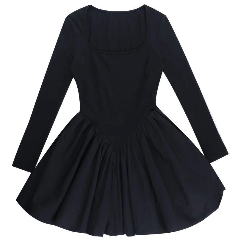LIZAKOSHT  -  Classic Black Princess Fluffy Dress For Women Elegant Crew Neck Long-sleeved High Waist Pleated Mini Gowns Party Streetwear