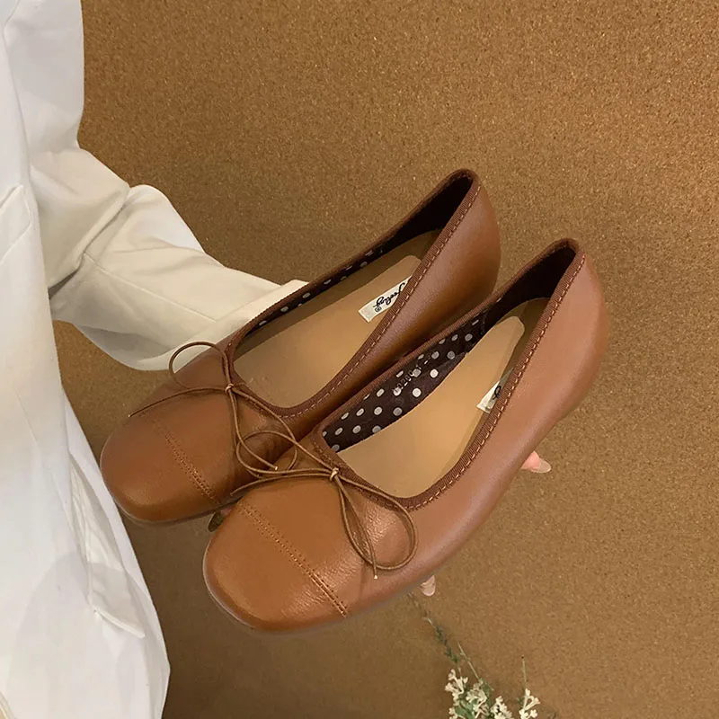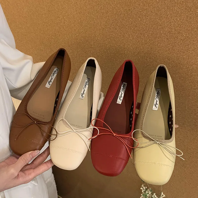 LIZAKOSHT - Classic Bow Flats Ballet Knot Slip On Casual Shoes Women Square Toe Shallow Ballet Flat Moccasin Ballerina Soft Brand Mary Janes