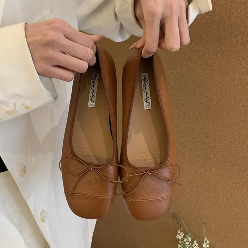 LIZAKOSHT  -  Classic Bow Flats Ballet Knot Slip On Casual Shoes Women Square Toe Shallow Ballet Flat Moccasin Ballerina Soft Brand Mary Janes