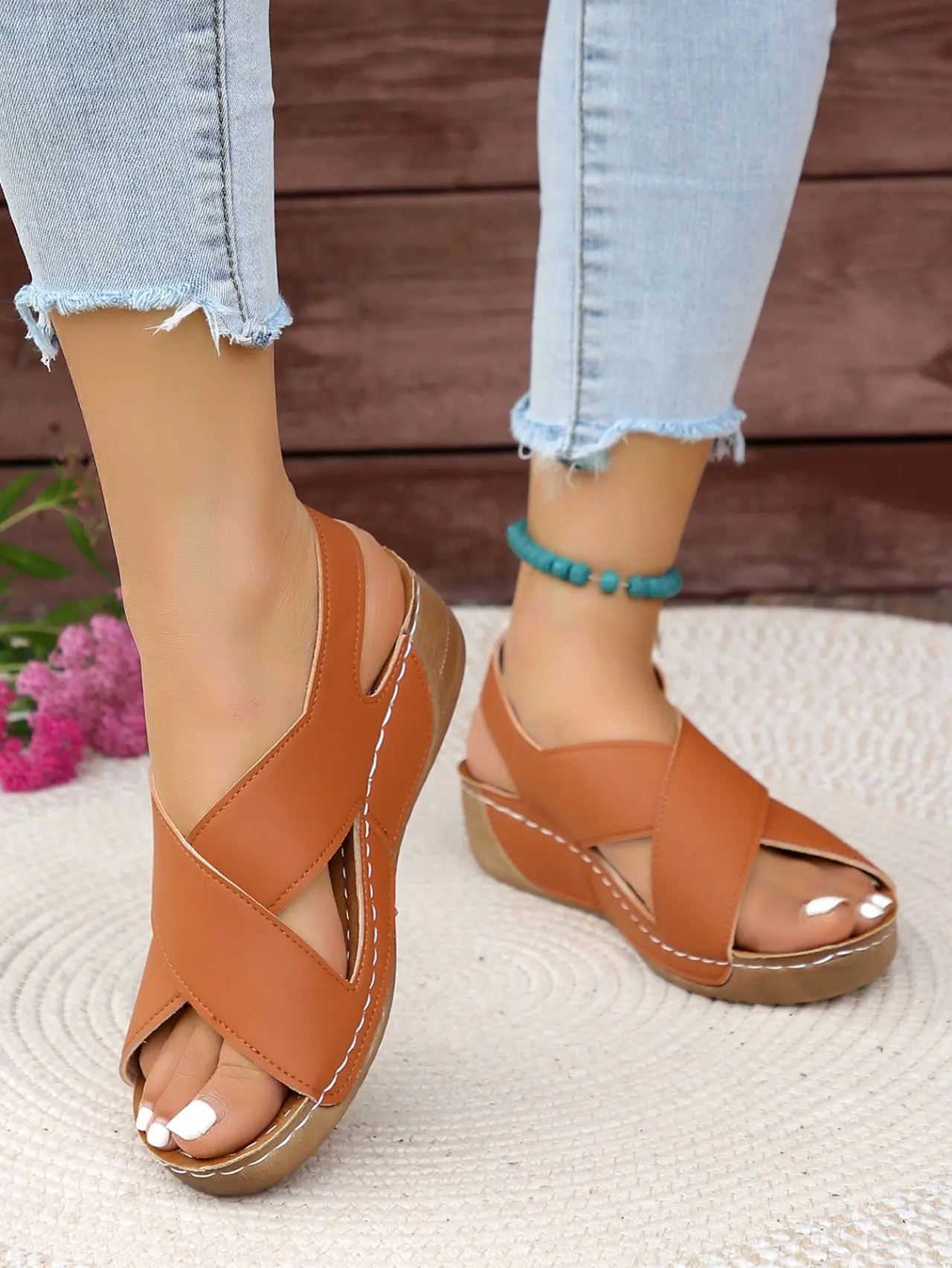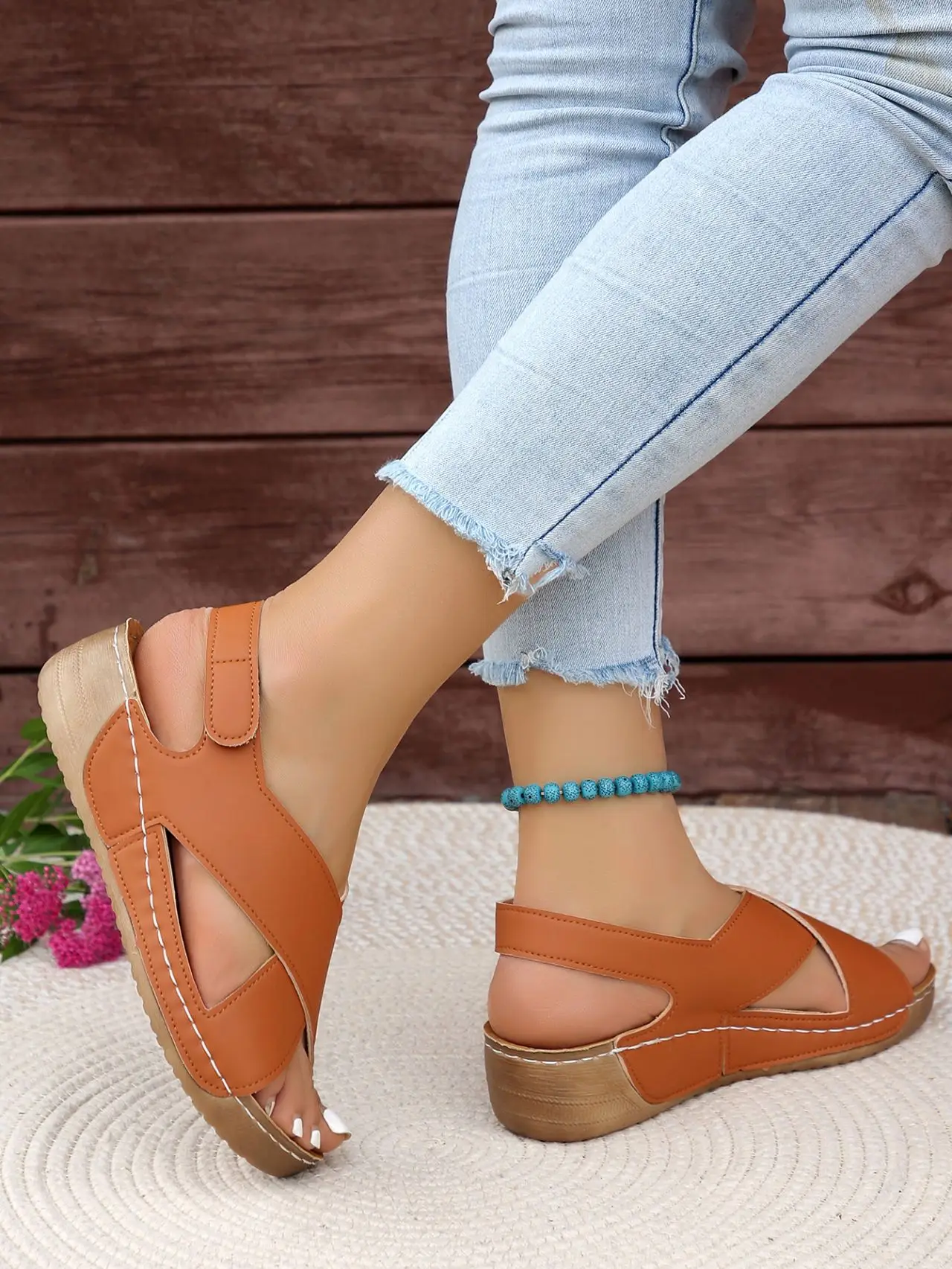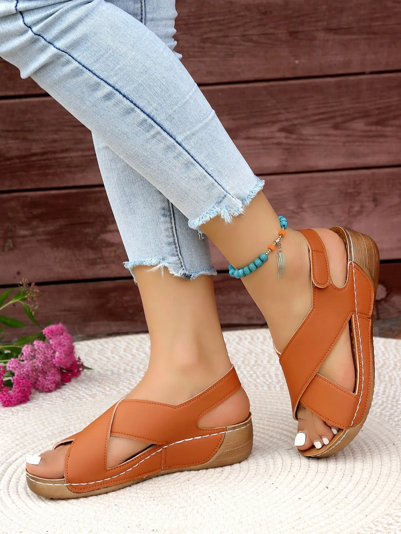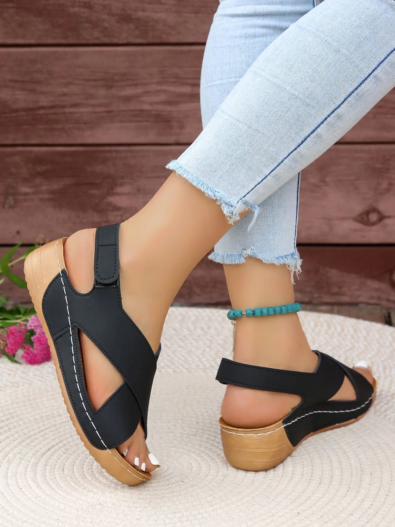 LIZAKOSHT - Clogs With Heel Low Sandals Woman Leather Large Size Summer Beach Shoes Open Toe Muffins shoe Suit Female Beige Thick Low-h