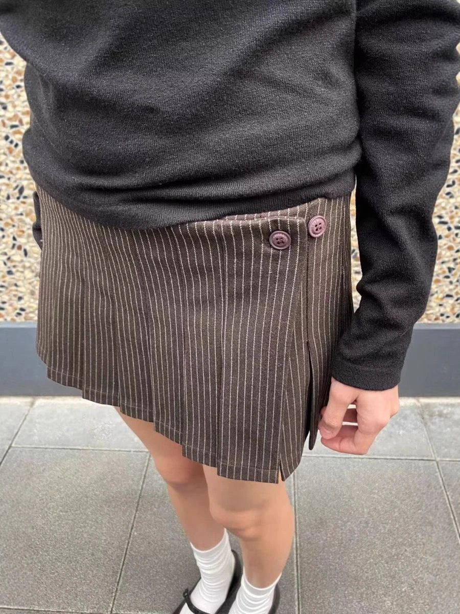 LIZAKOSHT  -  Coffee Striped Mini Pleated Skirts Women Spring Low Waist A-line Cotton Short Faldas Female Vintage Preppy Style Skirt New