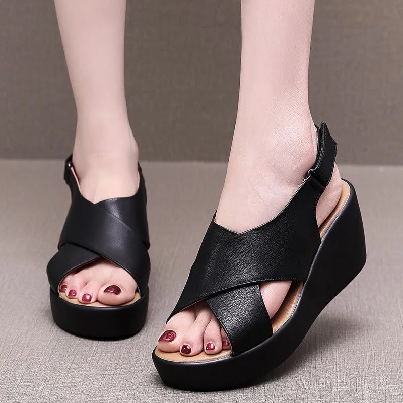 LIZAKOSHT - Cowhide Genuine Leather Women Sandal Platform High Heel Shoes Wedges Comfort Women Shoes Casual Trendy Shoes Women Sandals
