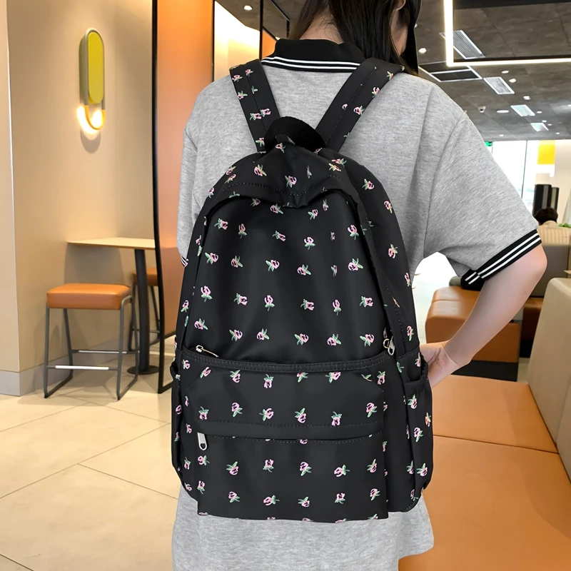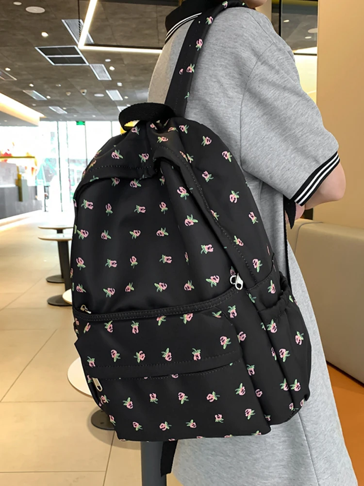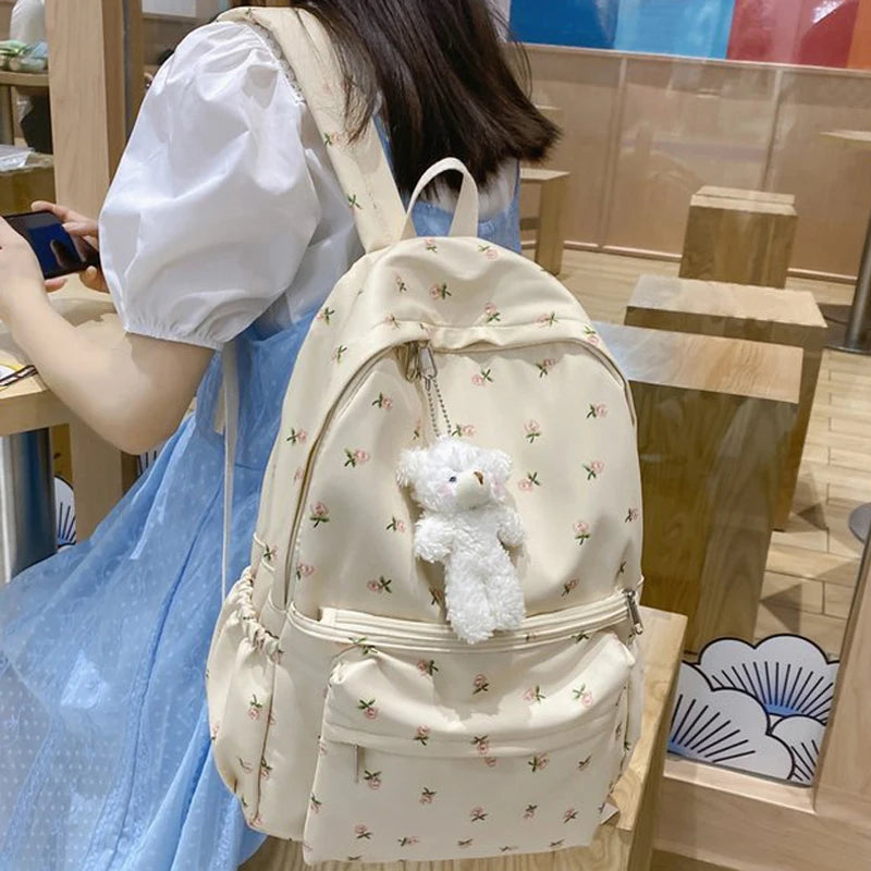 LIZAKOSHT - Cute Casual Floral Prints Women Backpack Girls Bookbags Large Capacity Students Khaki School Book Bags Travel Backpack Mochilas