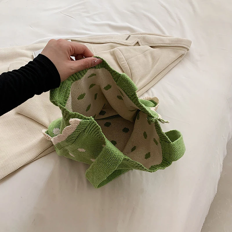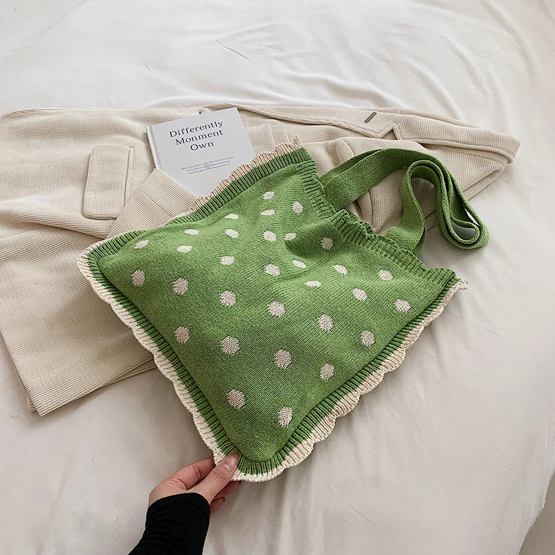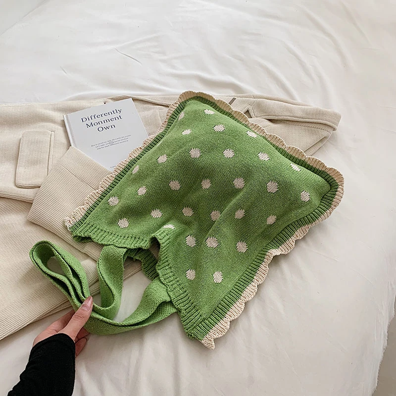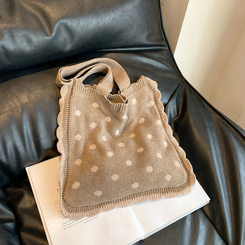 LIZAKOSHT - Cute Knit Dot Large Tote Handbags and Purses Women Shoulder Bags New Faux Fur Designer Ladies Shopping Bag High Quality