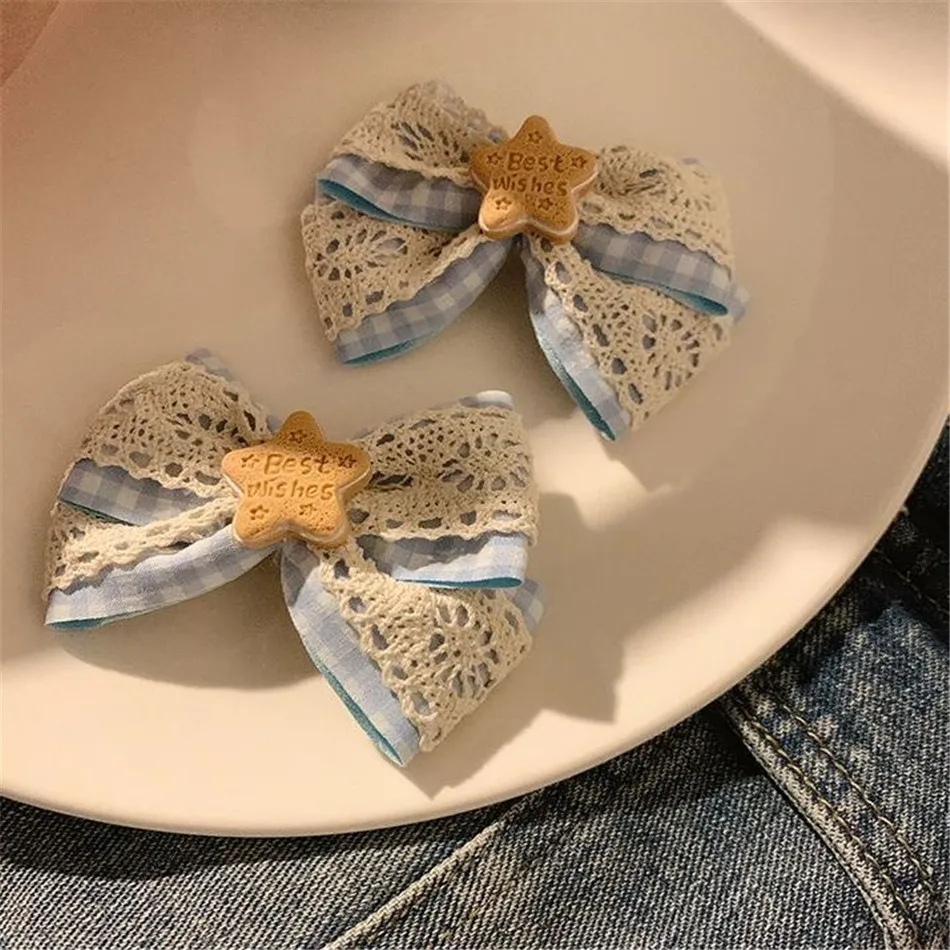 LIZAKOSHT - Cute Simulation Cookies Bow Side Clip Hairpin Japanese Lolita Women Hair Accessories D1426