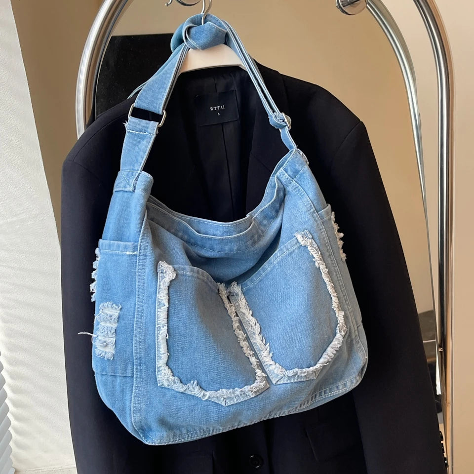 LIZAKOSHT - Denim Shoulder Bags For Women Fashion Canvas Crossbody Bags Large Capacity Cloth Messenger Bags Korea Style Pastoral Packages
