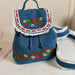 LIZAKOSHT - Denim Strawberry Flower Lace Backpack Casual Schoolbag Handbag Student Leisure Travel Commuter Backpack