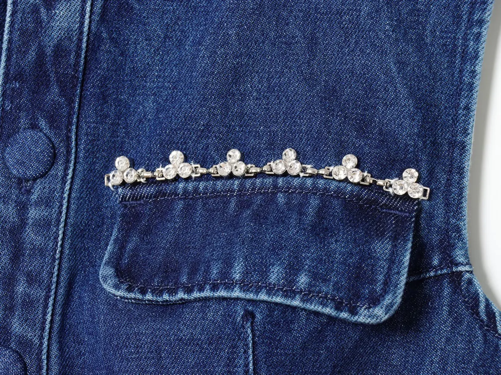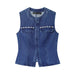 LIZAKOSHT - Denim Vests Jackets Autumn Women's 2025 New Slim O-neck Beaded Elegant Women Jackets Chic Street Youth Casual Denim Jacket Vests