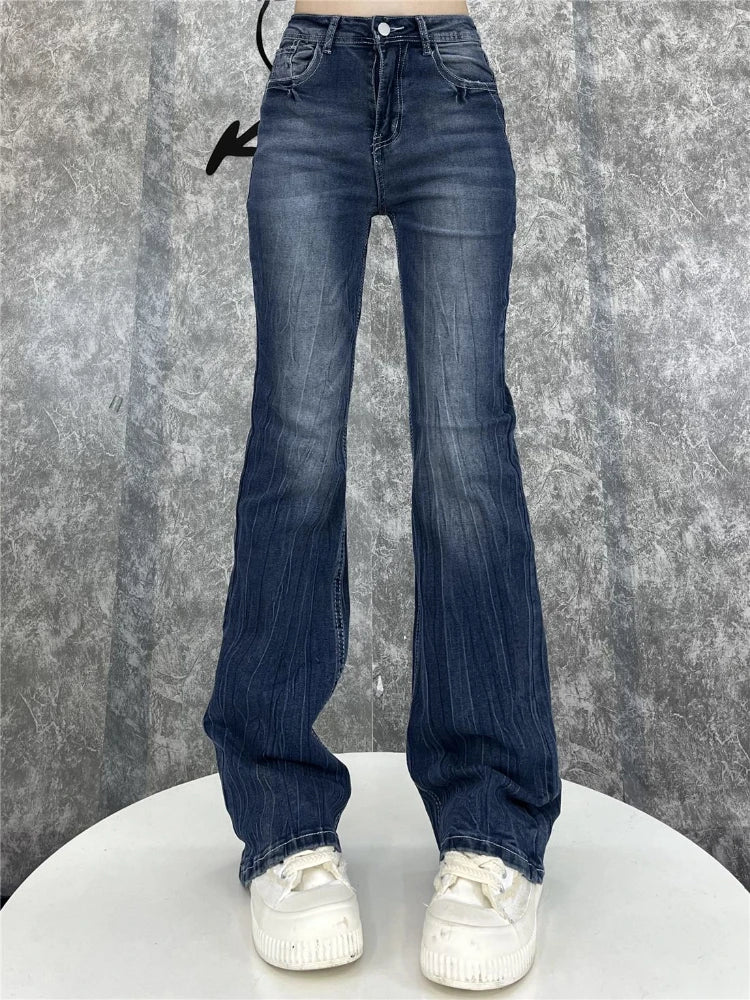 LIZAKOSHT - Design Sense Retro Micro Trumpet Jeans Women 2000s Vintage New High Waist Slim Pants Fashion Elastic Slim Mop Pants Streetwear