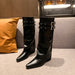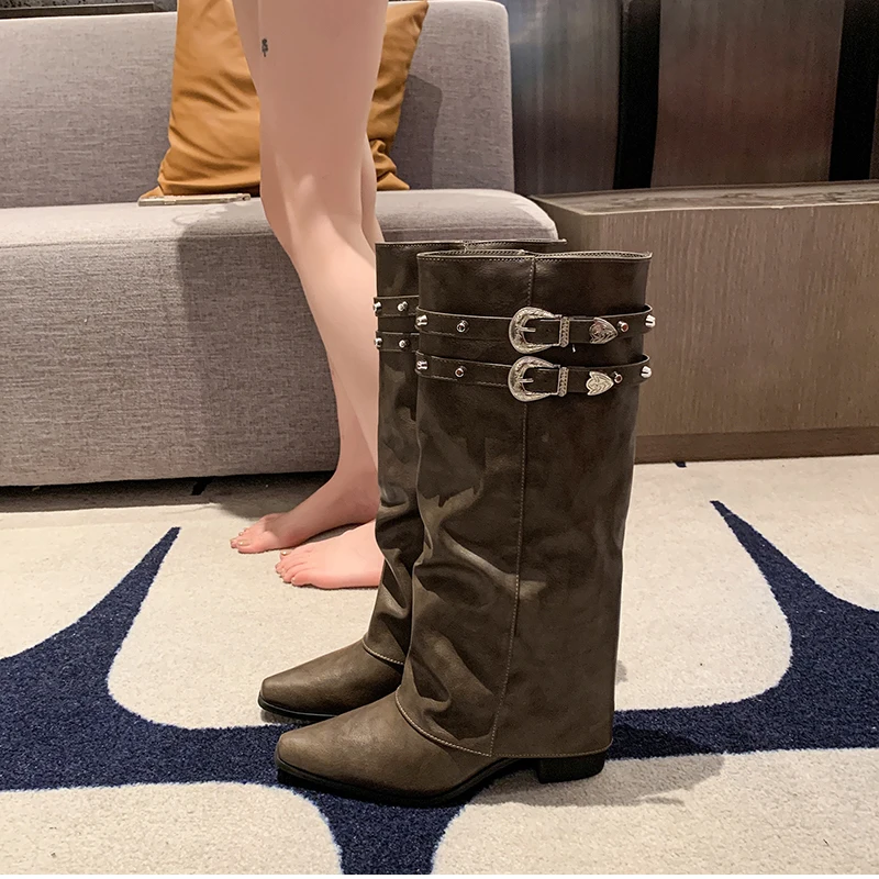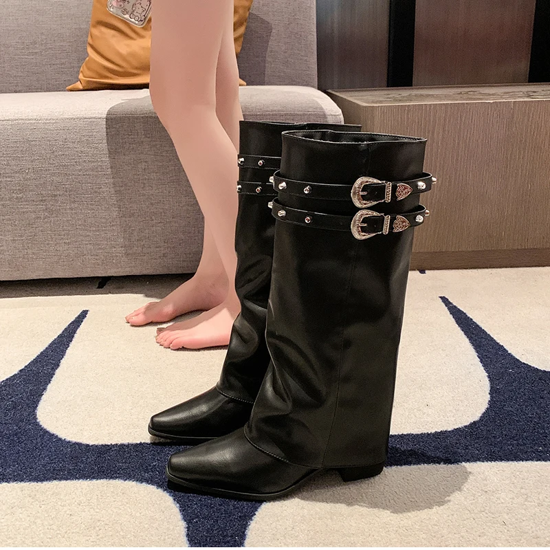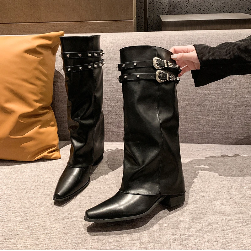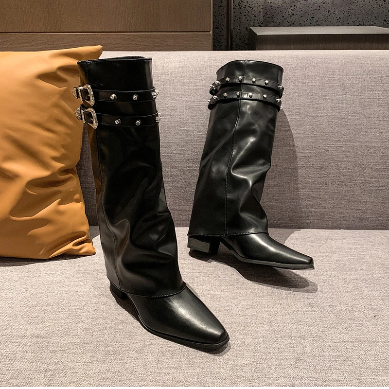 LIZAKOSHT - Designer Rivet Woman Knight Boots Shoes Ladies Elegant Thick Heel Trouser Legs Long Botas Autumn Winter Women's Booties