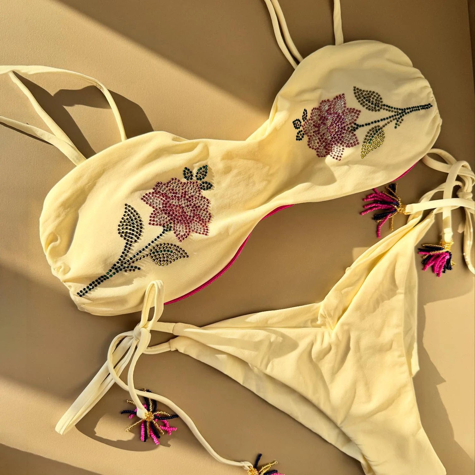 LIZAKOSHT  -  Diamond Bikini Sexy Women Swimsuit Bandeau Biquini Push Up Swimwear Female Shiny Bathing Suits Floral Bodysuit Beachwear