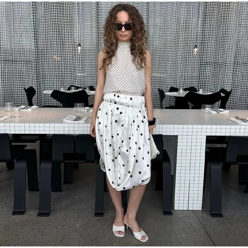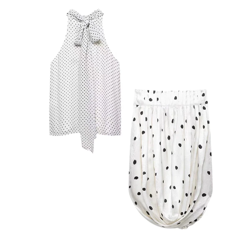 LIZAKOSHT - Dot Print Skirts Suits Women Halter Lace Up Sleeveless Irregular Sets Female 2025 Summer Fashion Chic Elastic Waist Street Set