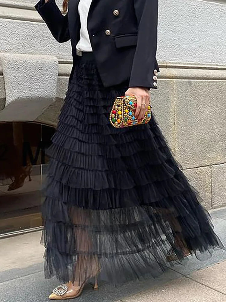 LIZAKOSHT - Elastic Waist Fashion Patchwork Maxi Skirts, Women Spring Summer Loungewear Simple Skirts, All Match Loose Sweet Ladies Skirts