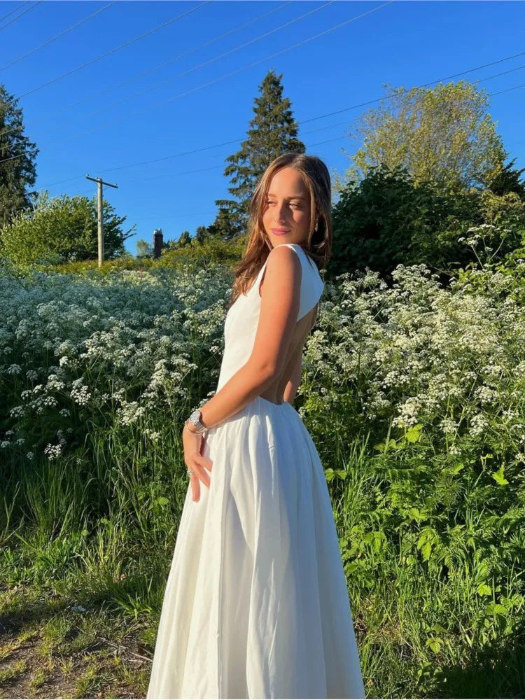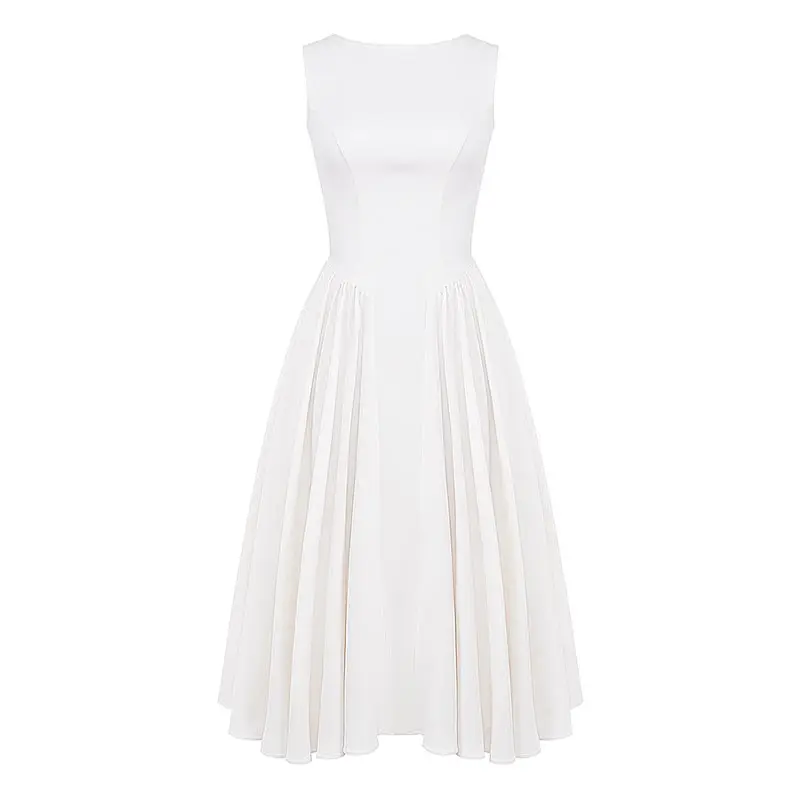 LIZAKOSHT  -  Elegant Backless Women White Sleeveless Midi Dress Fashion Slim O-neck Pleated Hem A-line Dresses Summer Female Chic Party Robes