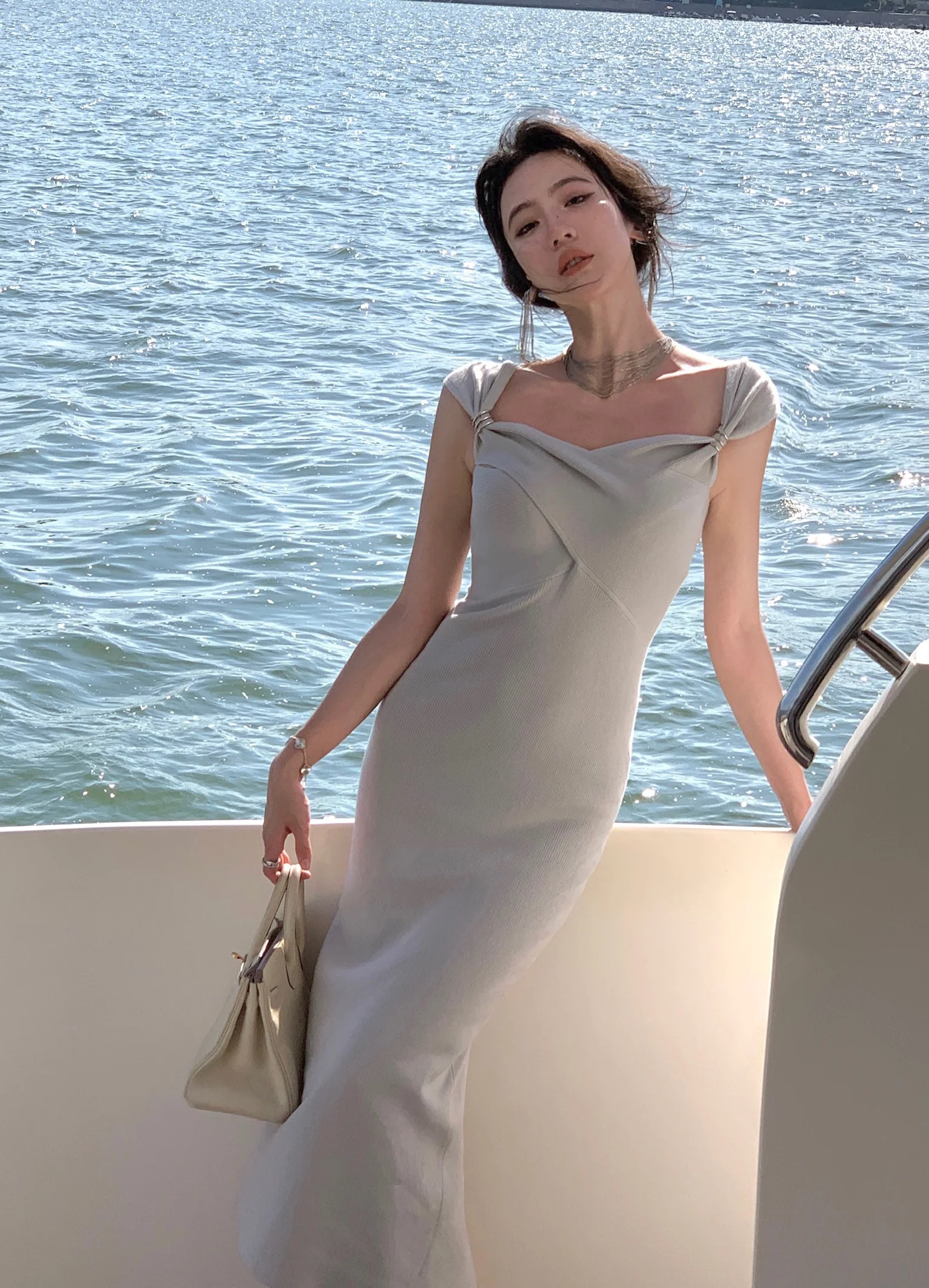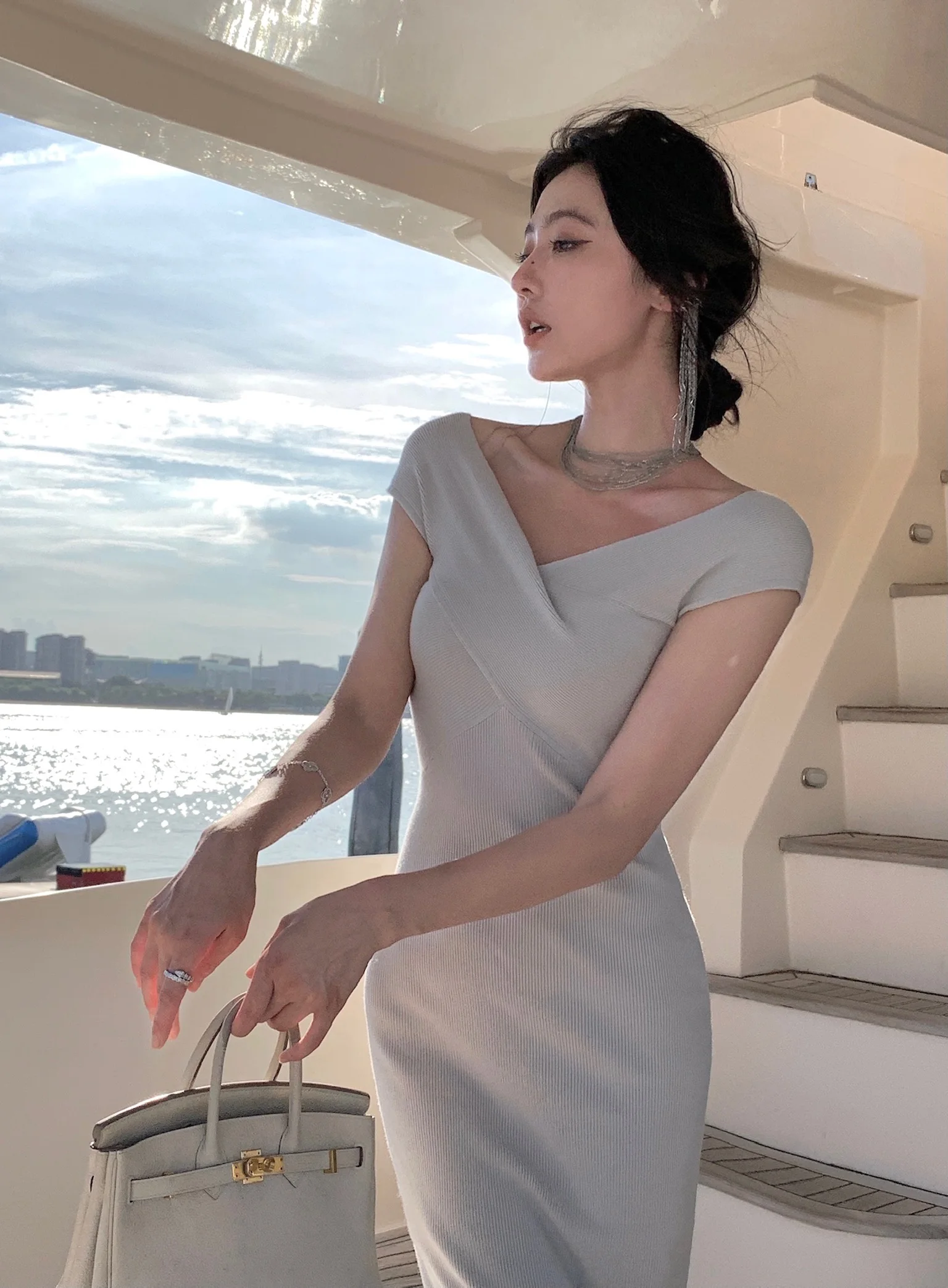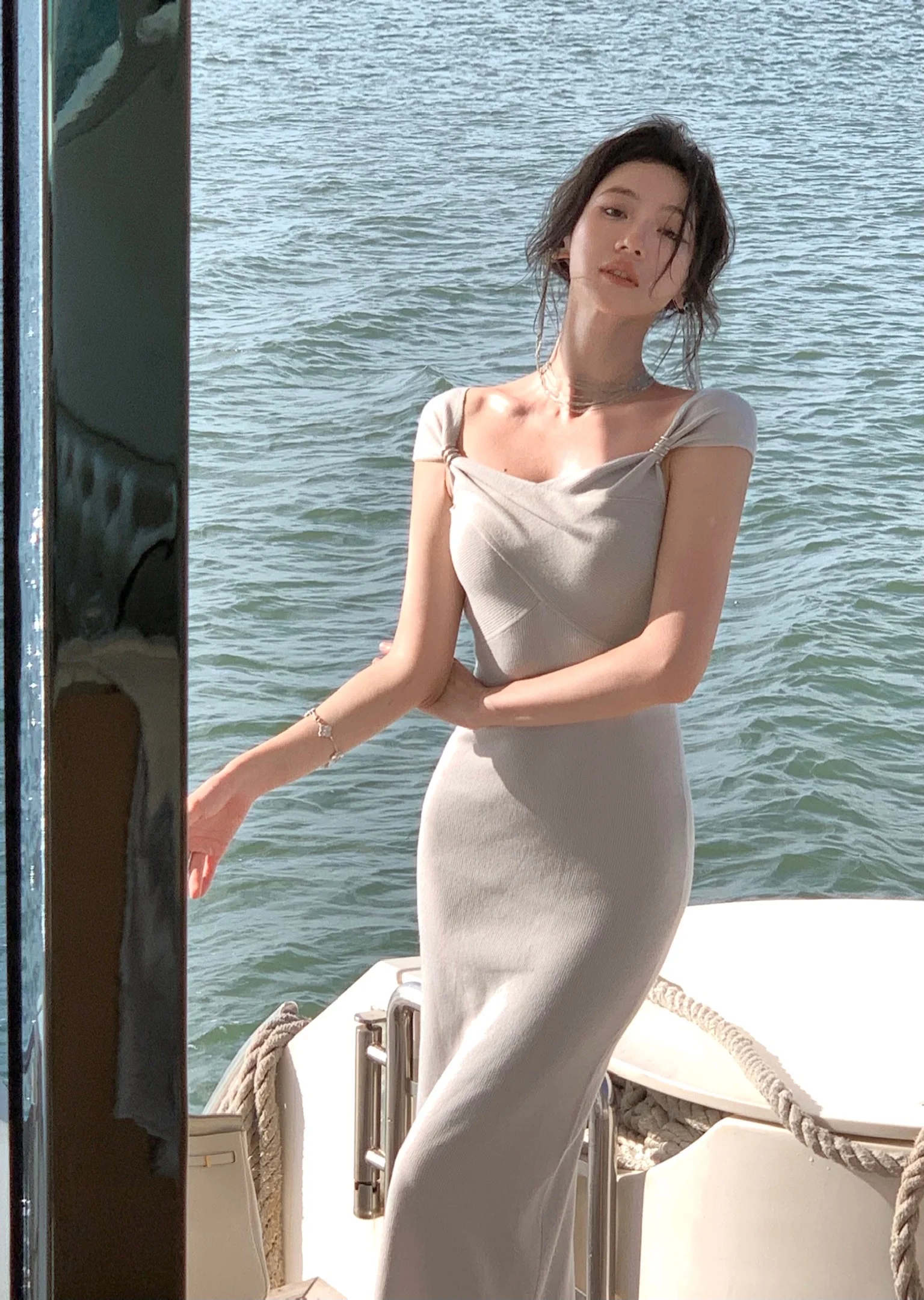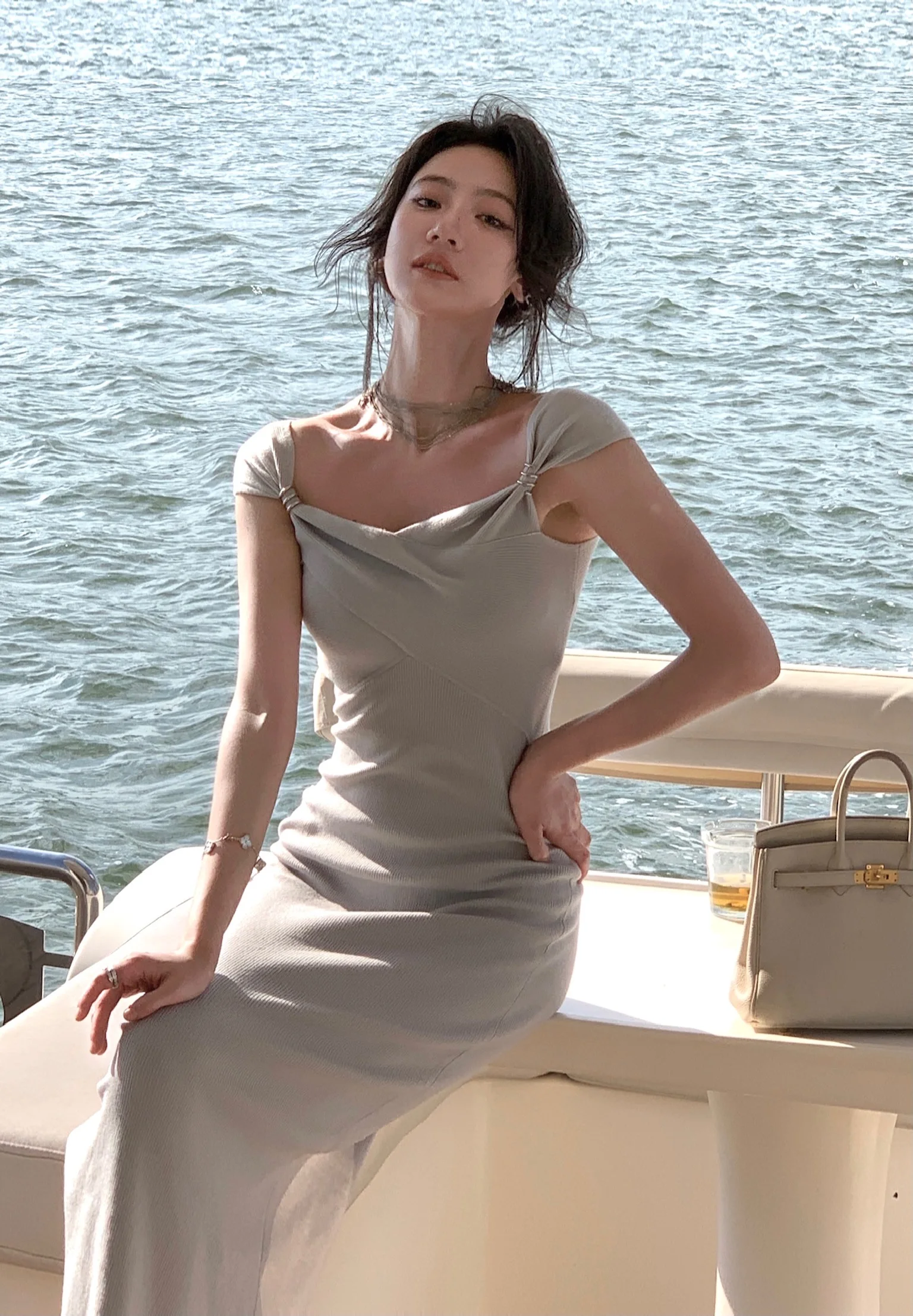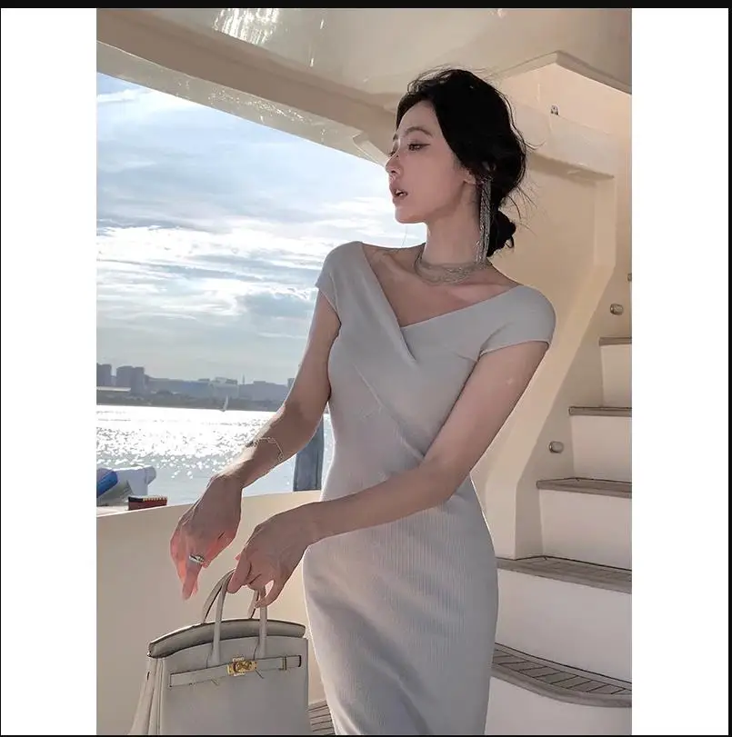 Neckline: slash neck