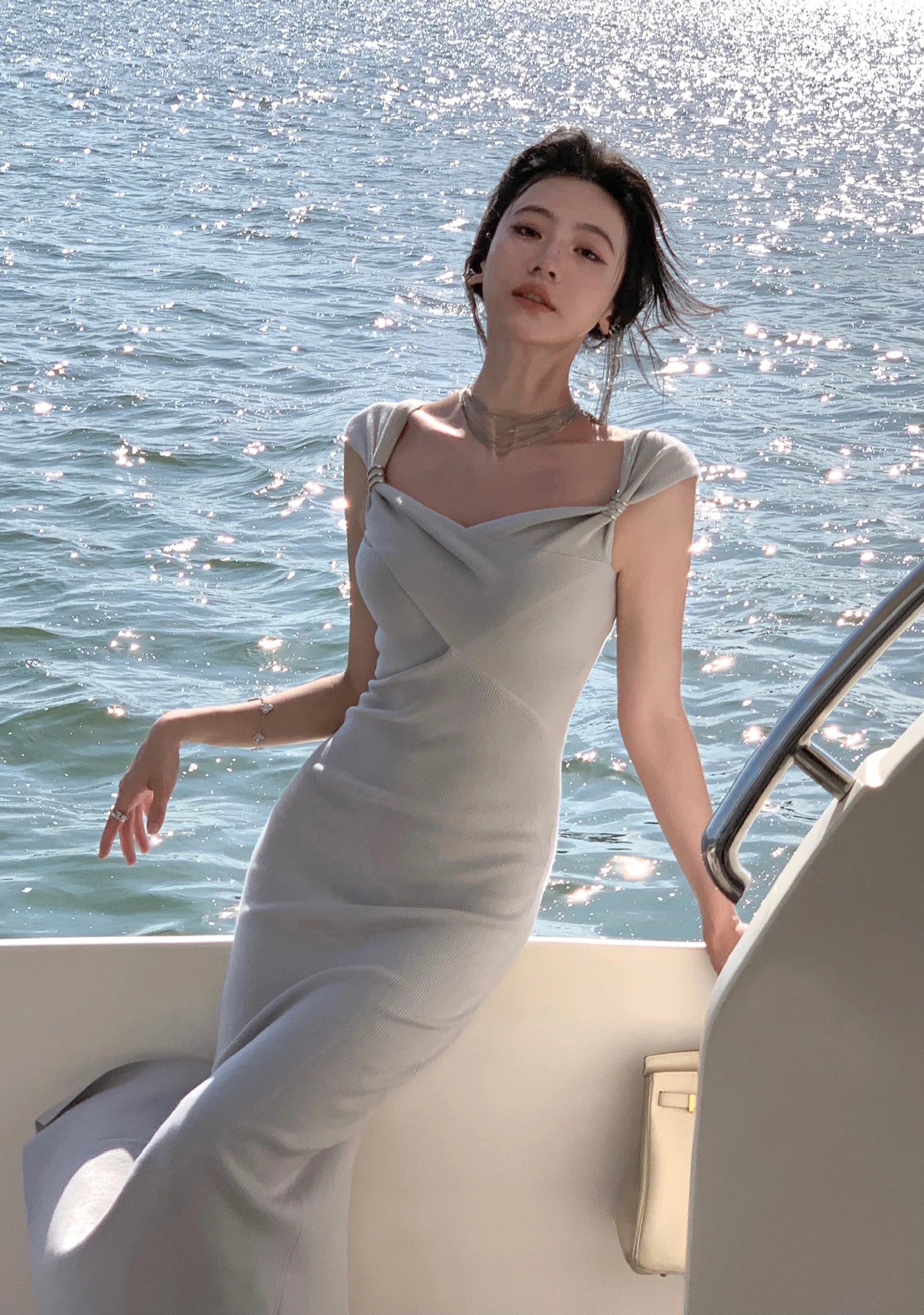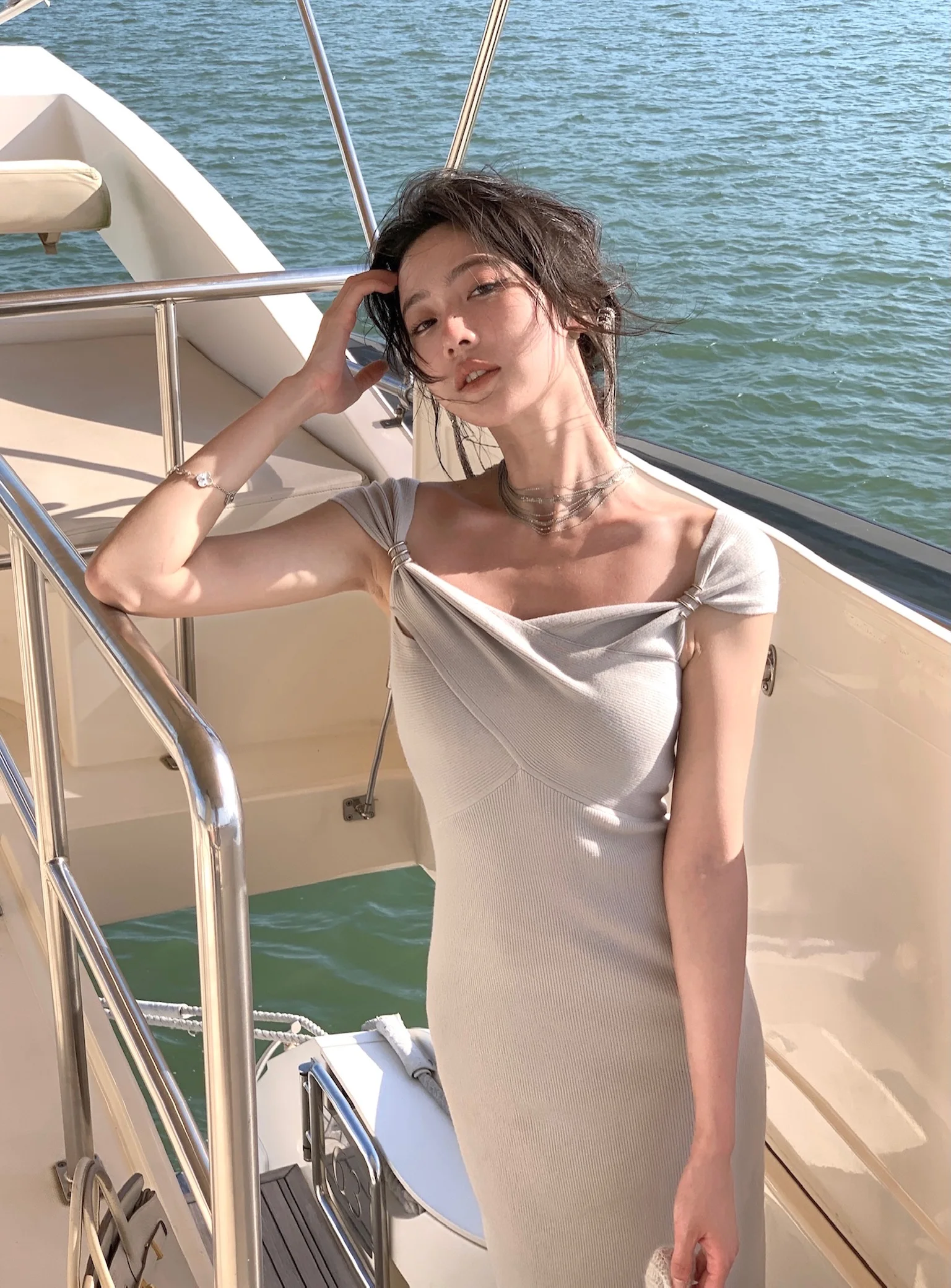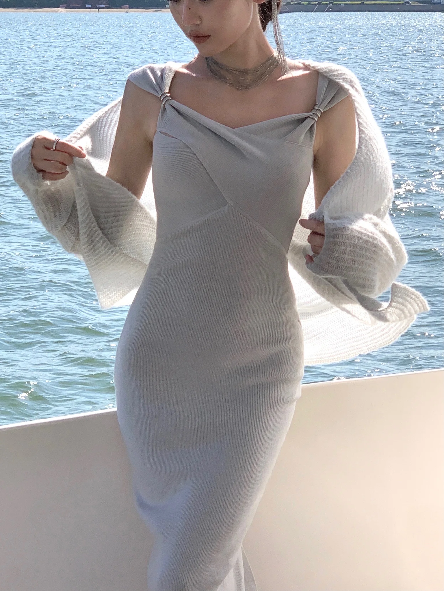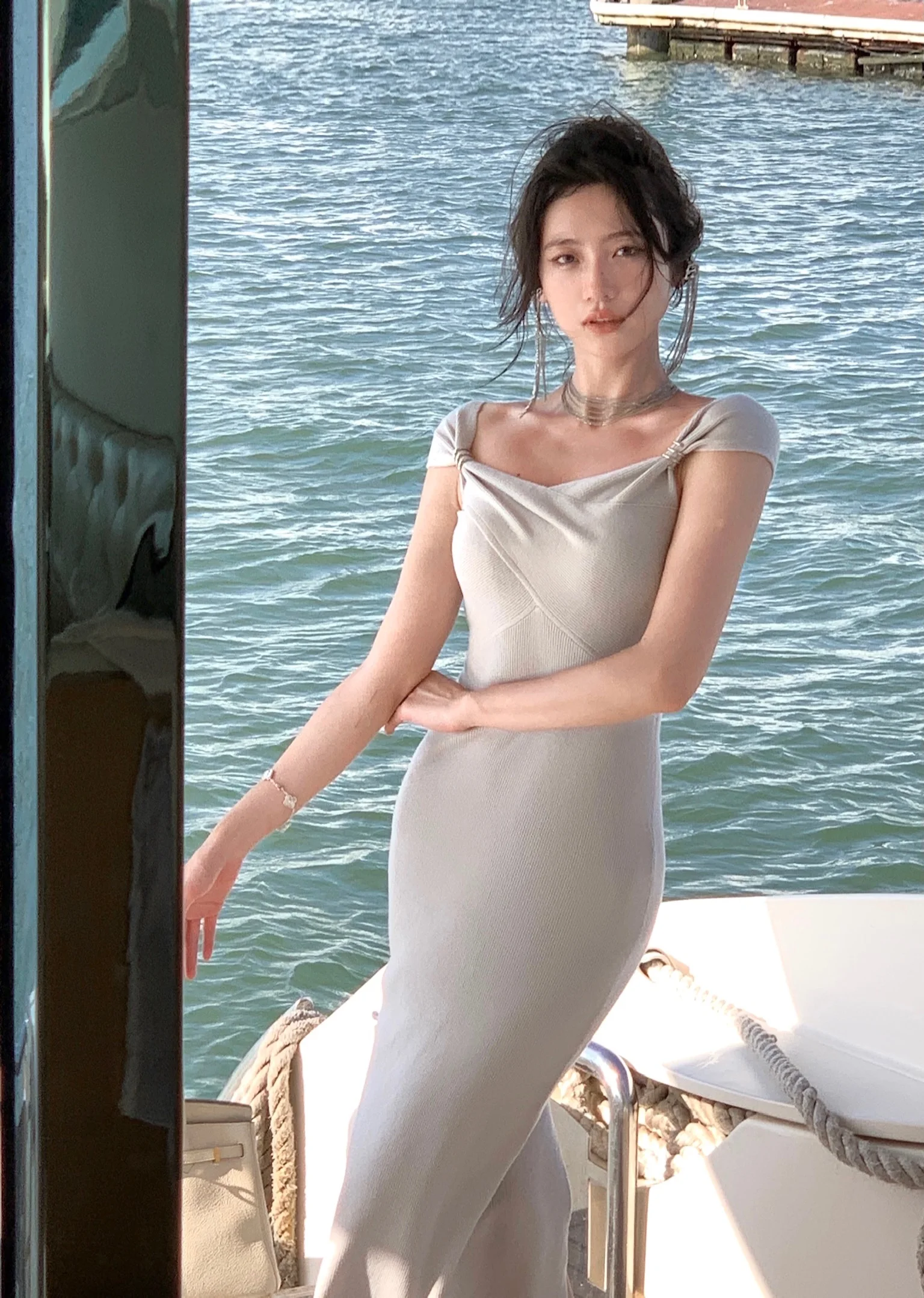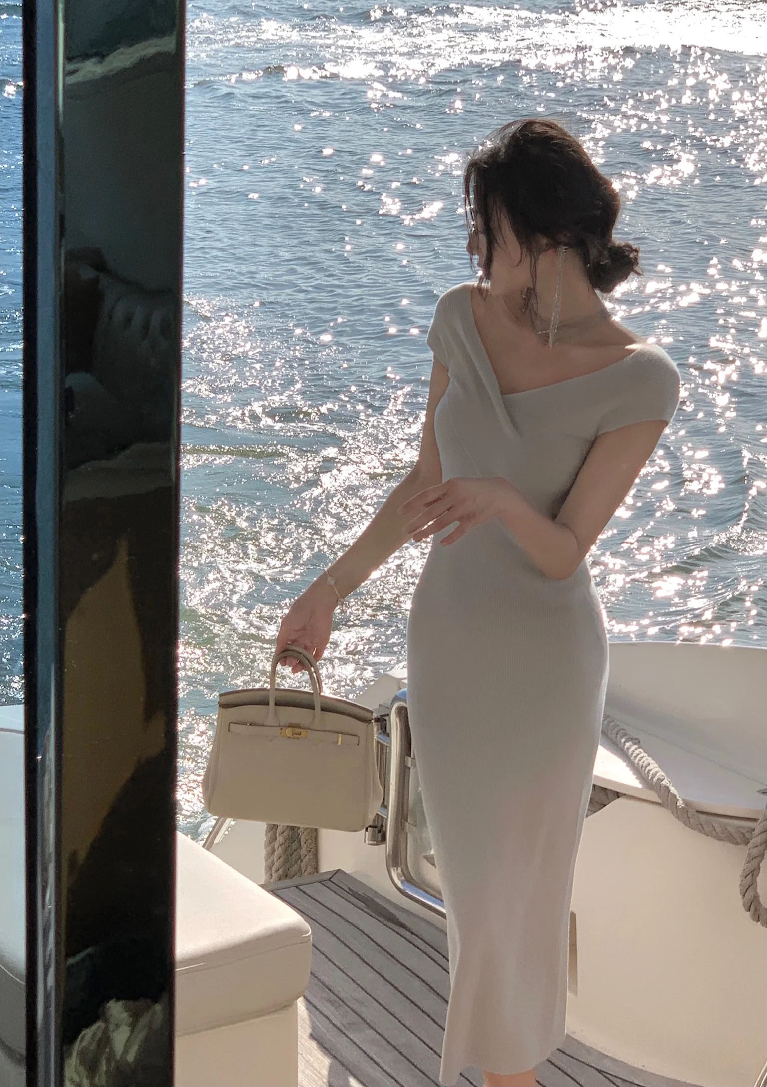 Neckline: slash neck