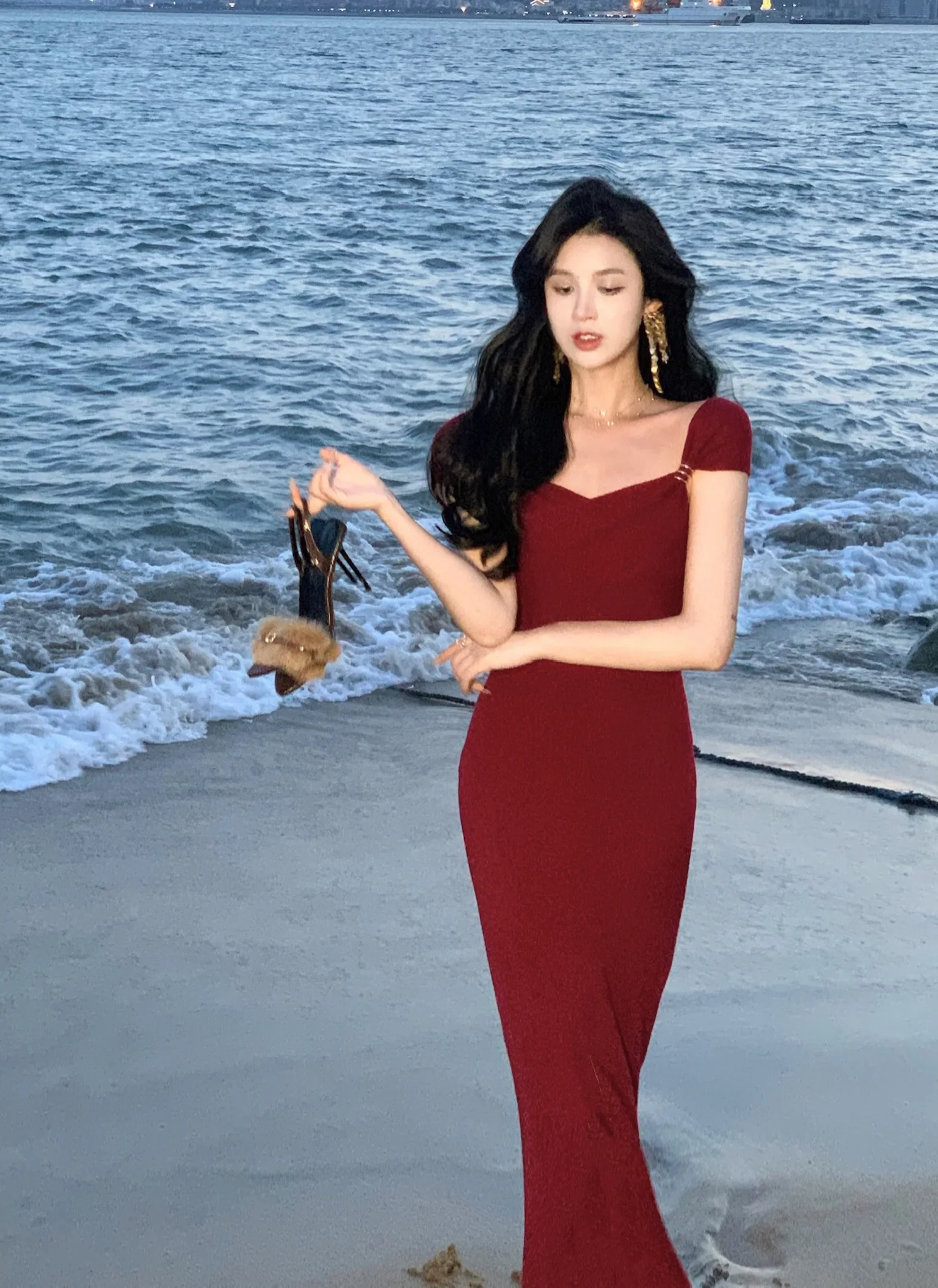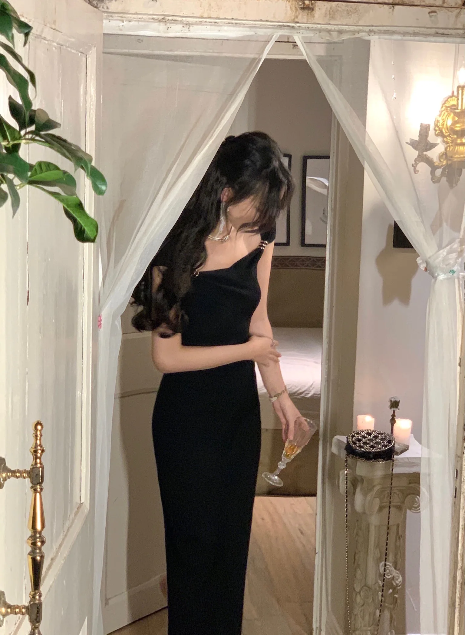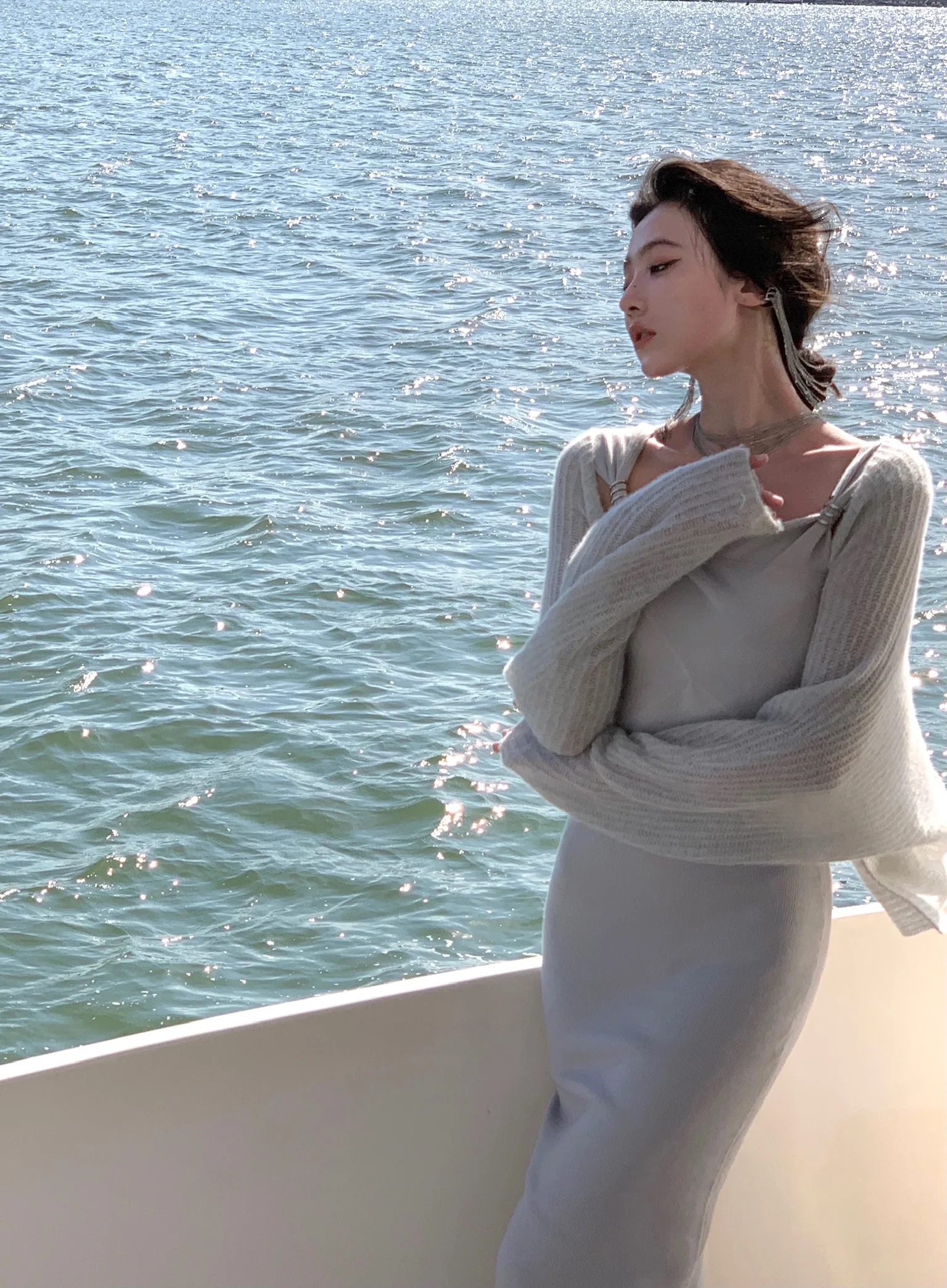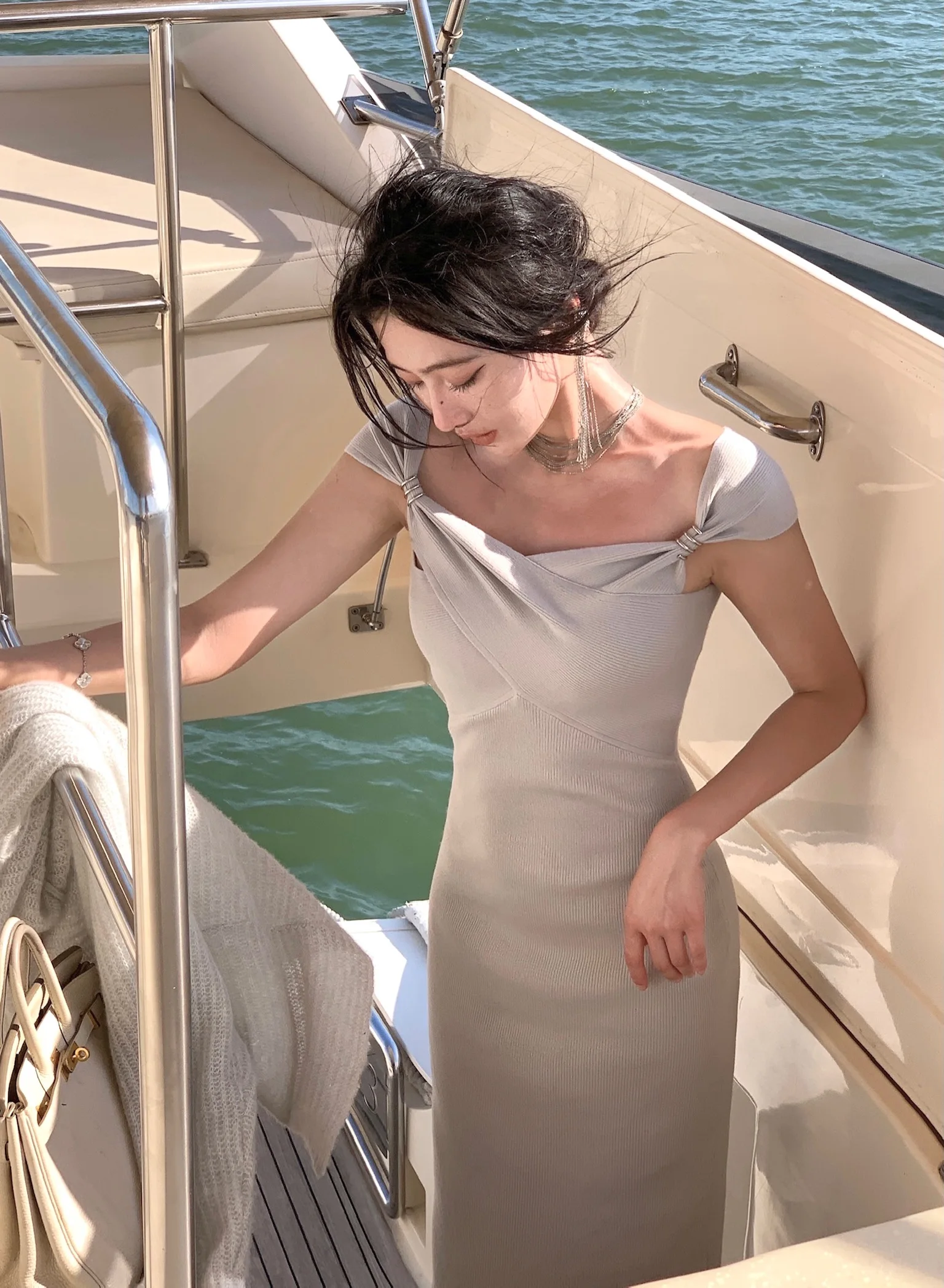 Neckline: slash neck